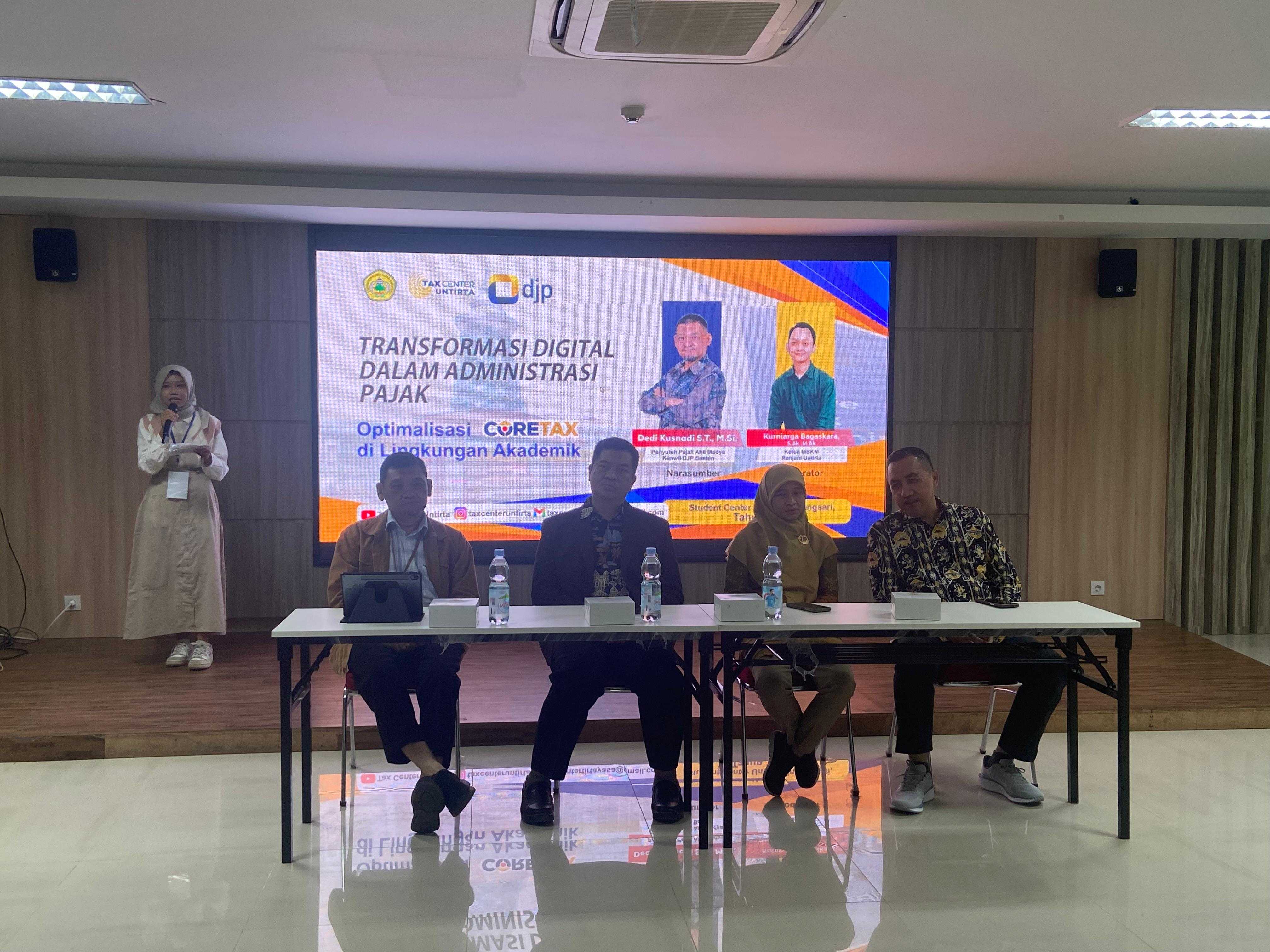 Universitas Sultan Ageng Tirtayasa (Untirta) menggelar Seminar Pakar dengan tema Transformasi Digital dalam Administrasi Pajak: Optimalisasi Coretax di Lingkungan Akademik. Acara ini menghadirkan Fungsional Penyuluh Pajak dari Kantor Wilayah Direktorat Jenderal Pajak (Kanwil DJP) Banten sebagai narasumber utama.