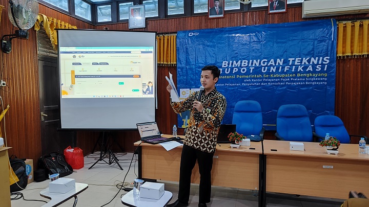Sesi pertama bimbingan teknis aplikasi e-Bupot unifikasi instansi pemerintah telah dilakukan pada pagi hari yang bertempat di Aula Dinas Pendidikan dan Kebudayaan Kabupaten Bengkayang (Selasa, 18/10).