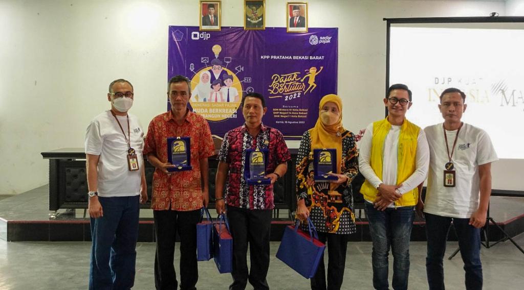 Kantor Pelayanan Pajak (KPP) Pratama Bekasi Barat menggandeng 3 (tiga) sekolah di Kota Bekasi untuk menggelar Kegiatan Pajak Bertutur Tahun 2022 yang mengusung tema “Generasi Sadar Pajak, Muda Berkreasi Membangun Negeri”. Berlangsung di Aula Sekolah Menengah Kejuruan (SMK) Negeri 1 Kota Bekasi pada Kamis (18/8), kegiatan ini dilaksanakan untuk menanamkan kesadaran pajak sejak dini bagi siswa-siswi sekolah dasar hingga menengah.