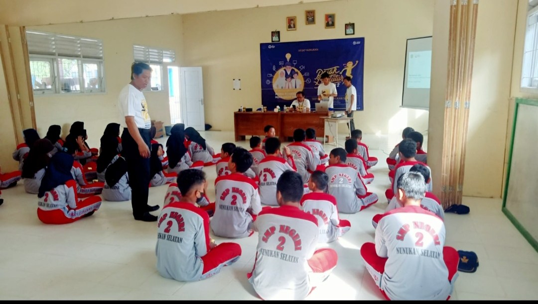 Kantor Pelayanan, Penyuluhan, dan Konsultasi (KP2KP) Nunukan menggandeng kurang lebih lima puluh pelajar Sekolah Menengah Pertama Negeri (SMPN) 2 Nunukan Selatan dalam kegiatan Pajak Bertutur 2022 di Aula SMP Negeri 2 Nunukan Selatan, Kab. Nunukan (Kamis, 18/8).