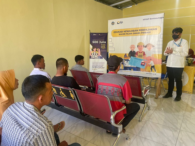 Kantor Pelayanan, Penyuluhan, dan Konsultasi Perpajakan (KP2KP) Bontosunggu melakukan kegiatan edukasi kewajiban perpajakan kepada wajib pajak baru di layanan mandiri KP2KP Bontosunggu, Jalan Pahlawan, Empoang, Binamu, Kaubupaten Jeneponto (Senin, 5/6).