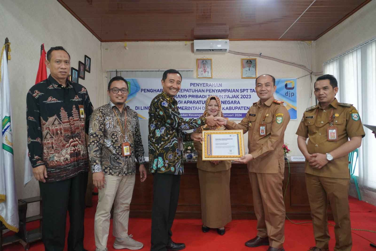 BKD Kabupaten Kepahiang menerima penghargaan sebagai Organisasi Perangkat Daerah (OPD) pertama dengan capaian 100% dalam penyampaian SPT tahunan Pajak Penghasilan (PPh) orang pribadi tahun pajak 2023 bagi Aparatur Sipil Negara (ASN) di lingkungan Pemda Kabupaten Kepahiang dan di wilayah kerja KPP Pratama Curup.