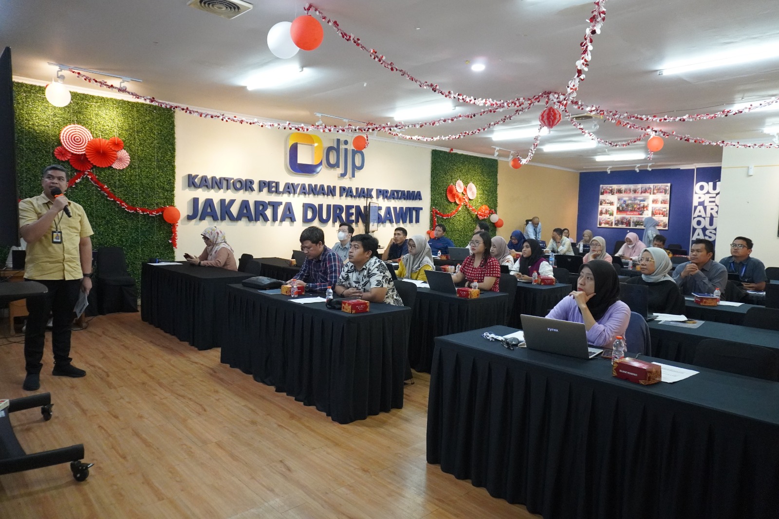 Kantor Pelayanan Pajak (KPP) Pratama Jakarta Duren Sawit melakukan kegiatan edukasi Coretax tahap 1 kepada wajib pajak di lingkungan KPP Duren Sawit yang bertempat di Aula KPP Pratama Jakarta Duren Sawit (Jumat, 27/09). Kegiatan yang mengundang 100 wajib pajak ini diadakan selama 3 minggu, yang dimulai dari tanggal 20 Agustus 2024 sampai dengan 4 September 2024 (Jumat, 27/9).