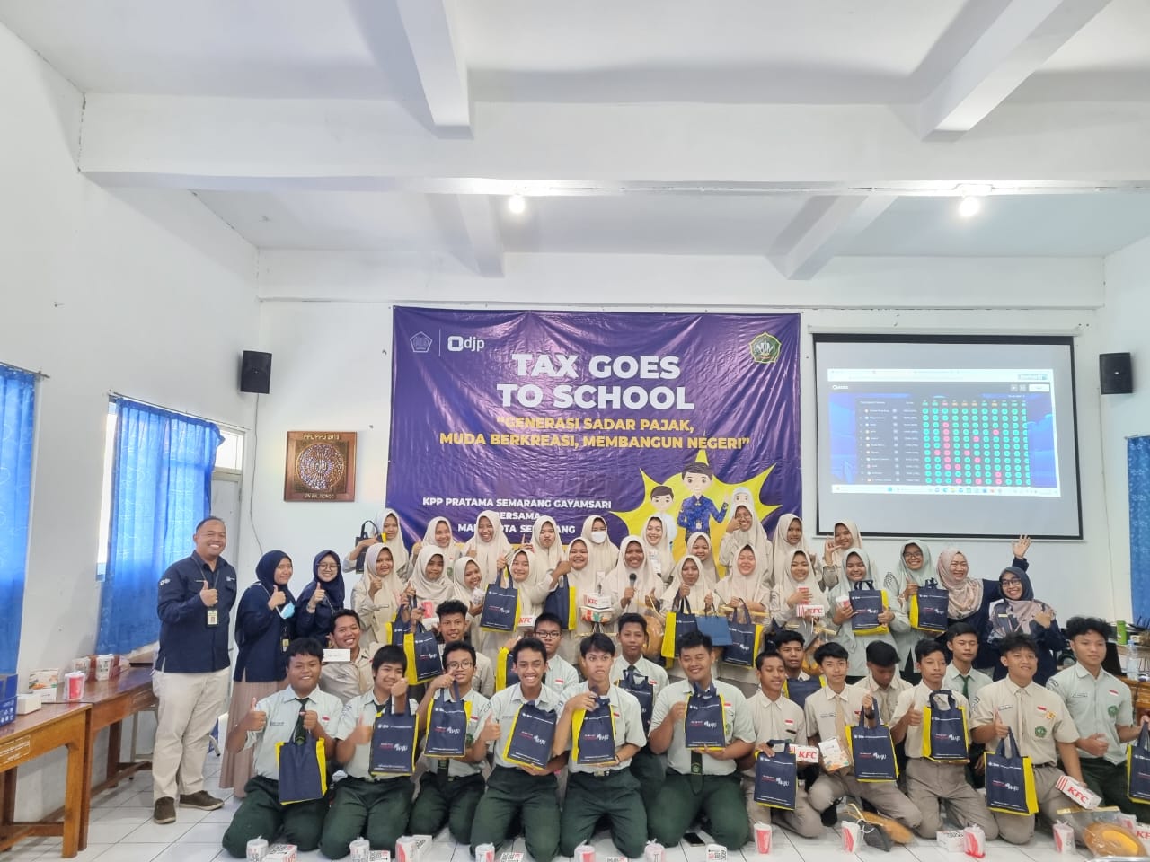 Kantor Pelayanan Pajak (KPP) Pratama Semarang Gayamsari mengadakan kegiatan Tax Goes To School (TGTS) dengan tema Generasi Sadar Pajak, Muda Berkreasi Membangun Negeri yang dilaksanakan secara luring di Madrasah Aliyah Negeri (MAN) 1 Semarang (Rabu, 21/6).