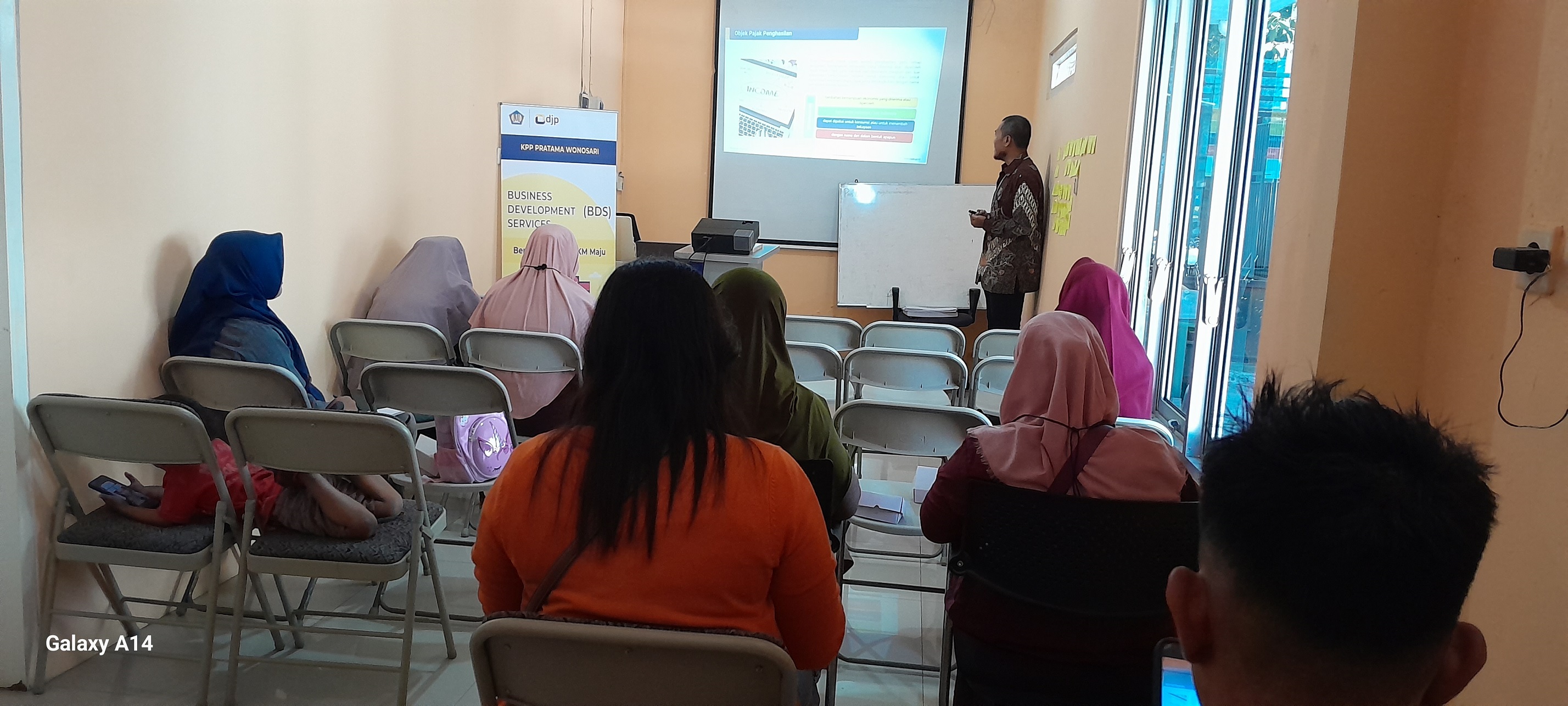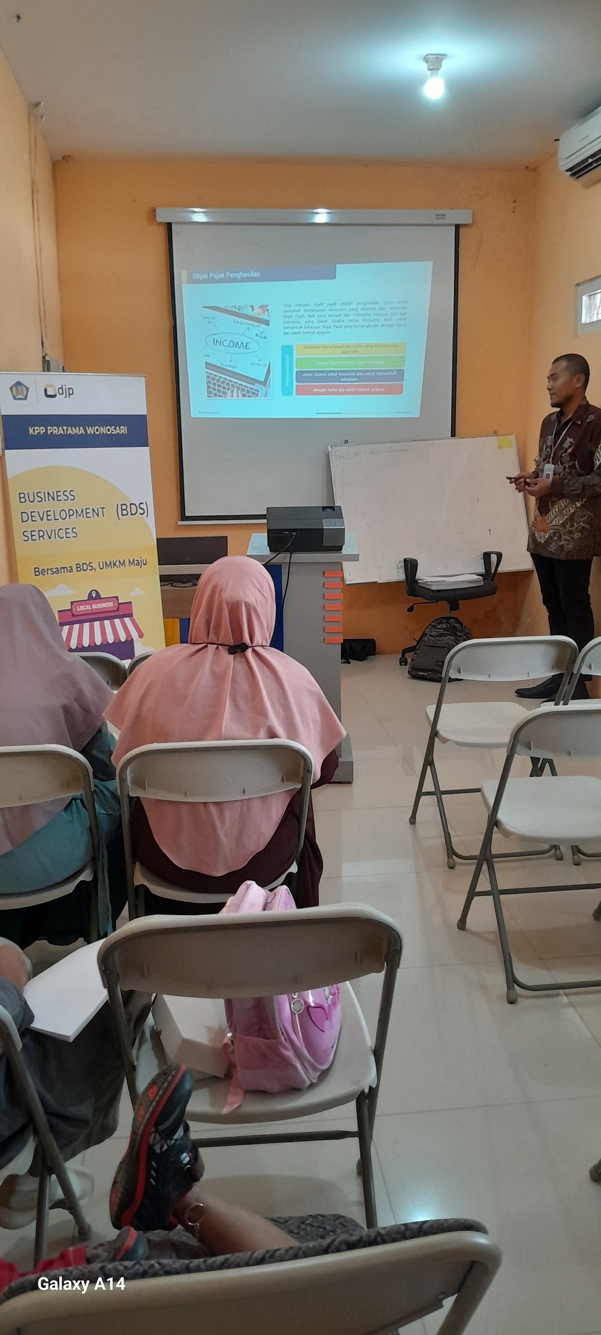 Kantor Pelayanan Pajak (KPP) Pratama Wonosari menghadiri undangan sebagai narasumber dari Rumah Kreatif BUMN (RKB) untuk melakukan kegiatan edukasi perpajakan kepada para pelaku Usaha Mikro Kecil Menengah (UMKM) Binaan dari PT PLN Wonosari Kabupaten Gunungkidul. Kegiatan edukasi ini dihadiri oleh belasan pelaku UMKM yang baru mulai merintis usaha dan dilaksanakan di Aula Gedung RKB Gunungkidul yang berlokasi di Kota Wonosari, Kabupaten Gunungkidul (Selasa, 13/6).