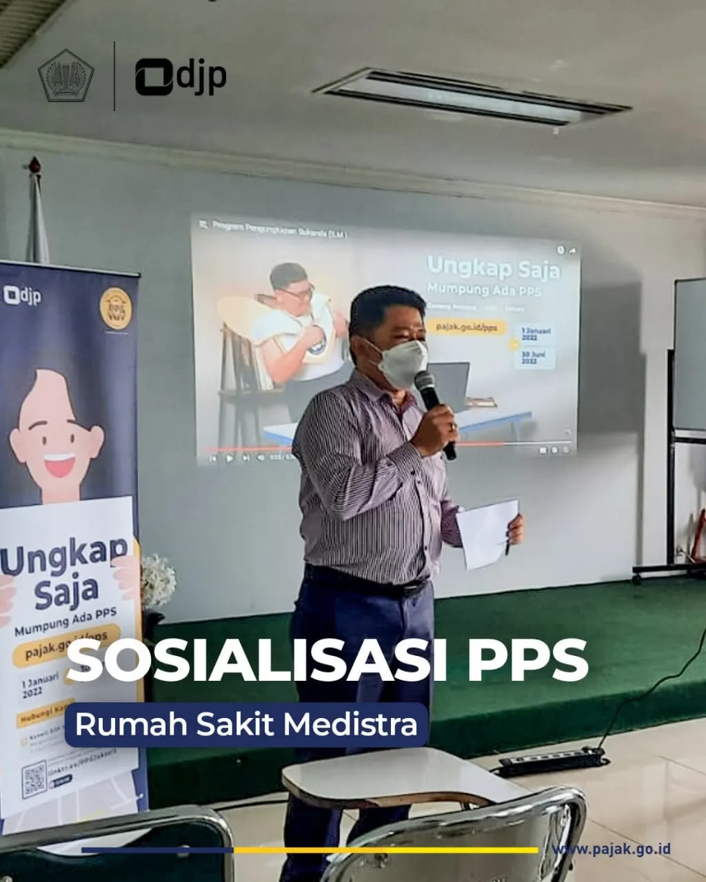 Kantor Wilayah Direktorat Jenderal Pajak (Kanwil DJP) Jakarta Selatan I menyelenggarakan Sosialisasi Program Pengungkapan Sukarela (PPS) bagi tenaga kesehatan di Rumah Sakit Medistra, Jakarta Selatan (Selasa, 21/06).