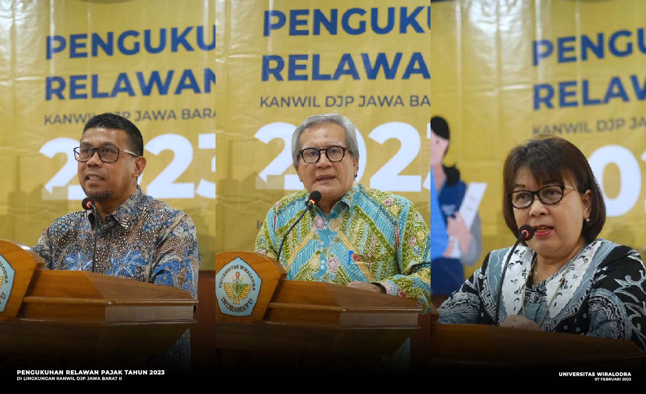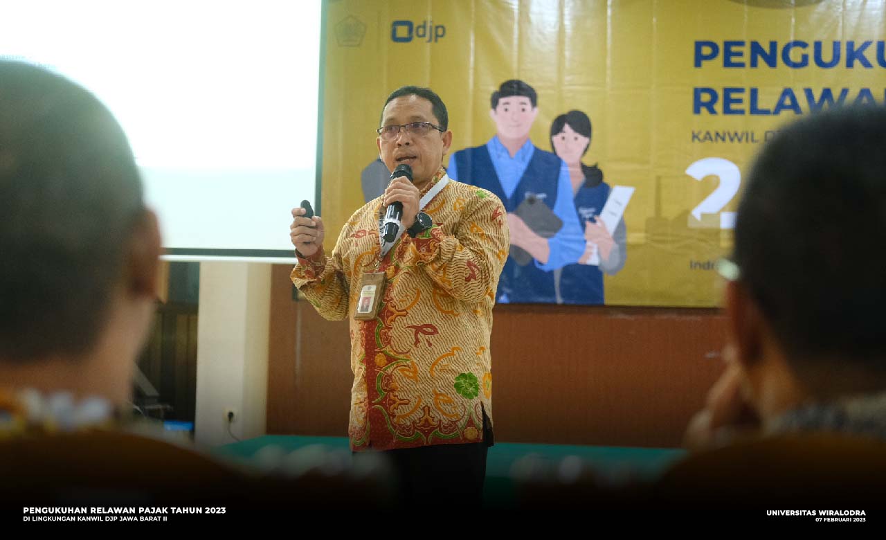 Kanwil DJP Jawa Barat II menyelenggarakan kegiatan Pengukuhan Relawan Pajak di Universitas Wiralodra Indramayu (Selasa, 7/2). Kegiatan di ikuti secara luring sebanyak 50 Relawan Pajak dari Tax Center Universitas Wiralodra dan secara daring sebanyak 333 Relawan Pajak dari seluruh Tax Center di lingkungan Kanwil DJP Jawa Barat II.