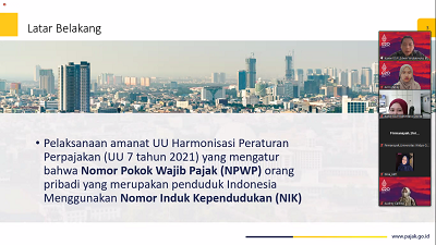 Tema yang diambil adalah tentang validasi Nomor Induk Kependudukan (NIK) menjadi Nomor Pokok Wajib Pajak (NPWP). Edwin Widiatmoko menjelaskan tentang empat cara mudah untuk memvalidasi NIK menjadi NPWP. Ia juga menjelaskan bahwa wajib pajak harus menyiapkan Kartu Keluarga (KK) dan Akun DJP Online.