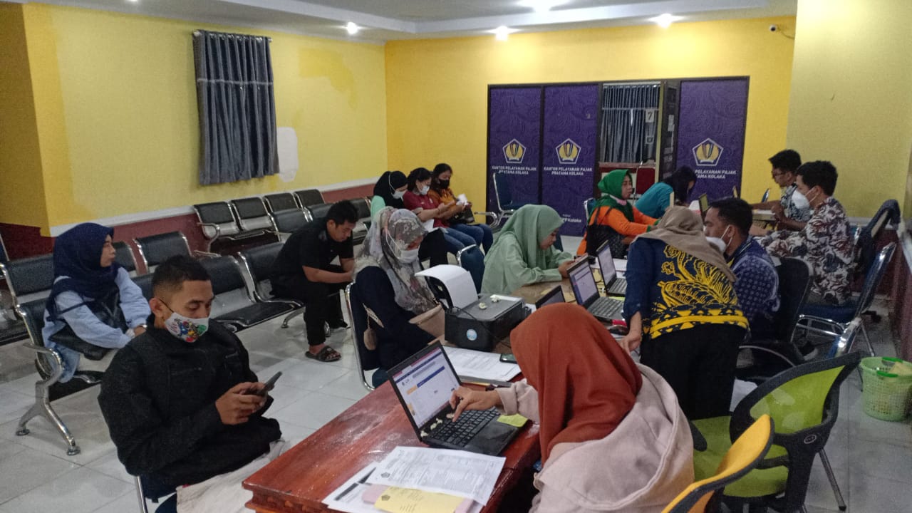 Tim Satuan Tugas Kantor Pelayanan Pajak (KPP) Pratama Kolaka membuka pelayanan pelaporan SPT Tahunan lebih lama dengan memperpanjang jam pelayanan sampai dengan pukul 18.30 WITA di Aula Pos Pelayanan KPP Pratama Kolaka, Kabupaten Kolaka (Jumat, 31/3).