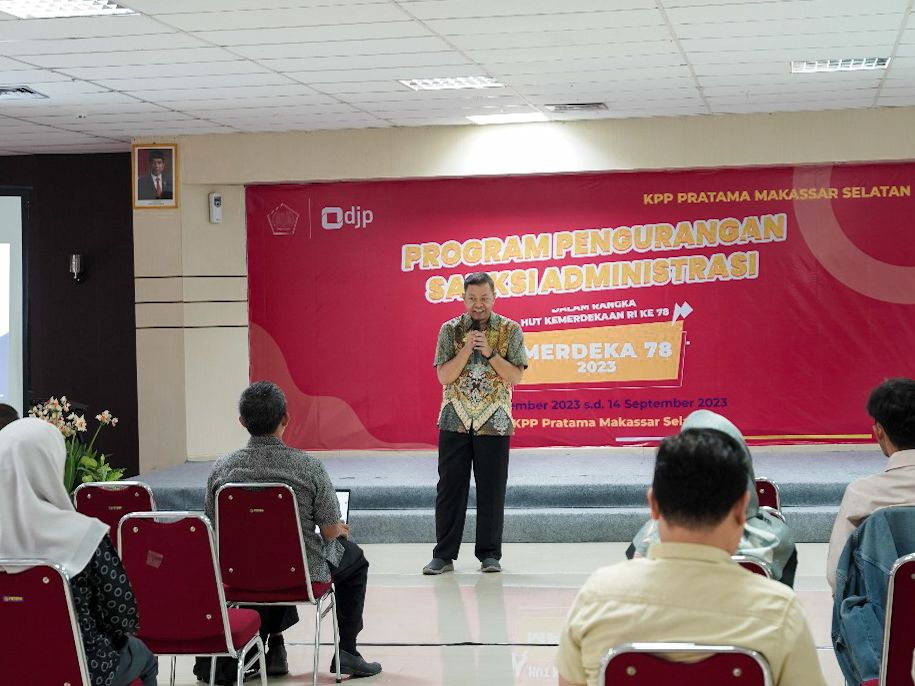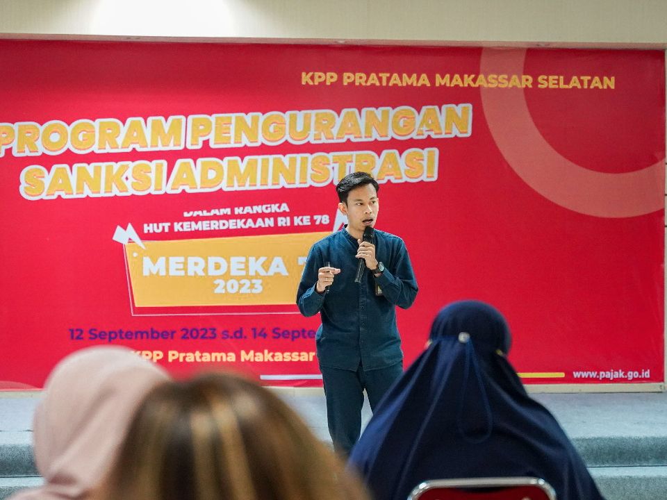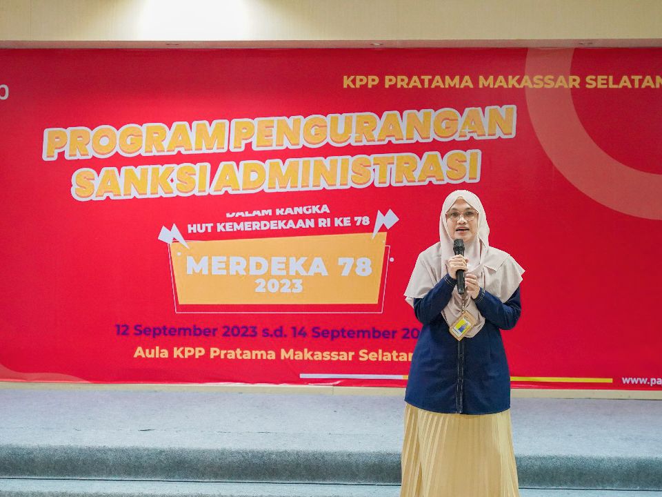 Kegiatan edukasi terkait ketentuan Program PSA Merdeka 78 KPP Pratama Makassar Selatan dibuka dengan sambutan dari Samudro Budiono selaku Kepala Seksi Pemeriksaan, Penilaian, dan Penagihan KPP Pratama Makassar Selatan, kemudian dilanjutkan dengan pemaparan materi oleh Tim Penyuluh KPP Pratama Makassar Selatan. Fungsional Penyuluh KPP Pratama Makassar Selatan Nurjihad Hasal menjelaskan bahwa wajib pajak yang mengikuti Program PSA Merdeka 78 ini dan akan diberikan pengurangan sanksi administrasi sebesar 78% dari nilai sanksi administrasi untuk kategori Super, pengurangan 64% dari nilai sanksi administrasi untuk kategori Spesial, dan pengurangan 45% dari nilai sanksi administrasi kategori Standar.