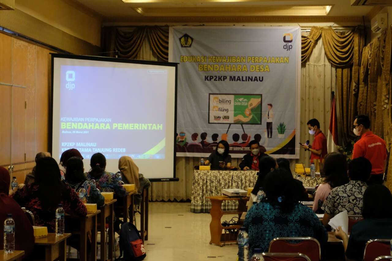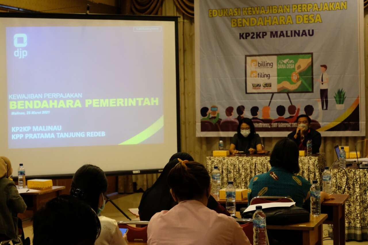 Kantor Pelayanan Penyuluhan dan Konsultasi Perpajakan (KP2KP) Malinau memberikan edukasi perpajakan kepada 17 Bendahara Desa. Kegiatan tersebut dilaksanakan pukul 09:00 WITA di aula Hotel Mahkota, Jalan Raja Pandita No. 138, RT 005, Malinau Hulu, Malinau Kota, Kabupaten Malinau (Kamis, 25/3).