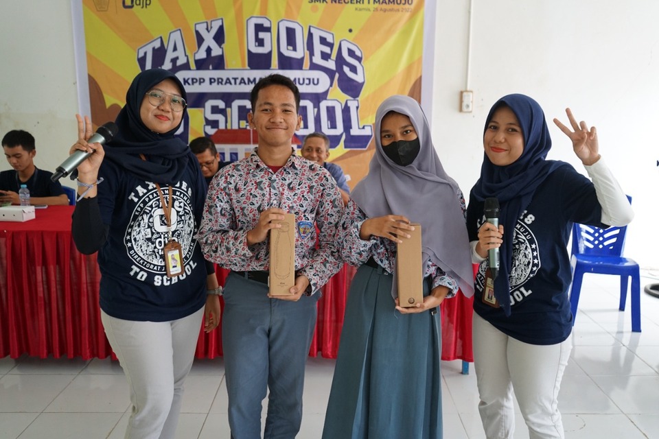Kantor Pelayanan Pajak (KPP) Pratama Mamuju mengadakan acara Tax Goes To School (TGTS) di SMK Negeri 1 Mamuju, Jl Husni Thamrin, Kel. Binanga, Kec. Mamuju, Kabupaten Mamuju (Kamis, 26/8). TGTS kali ini berfokus untuk mengenalkan pentingnya pajak bagi sebuah negara.