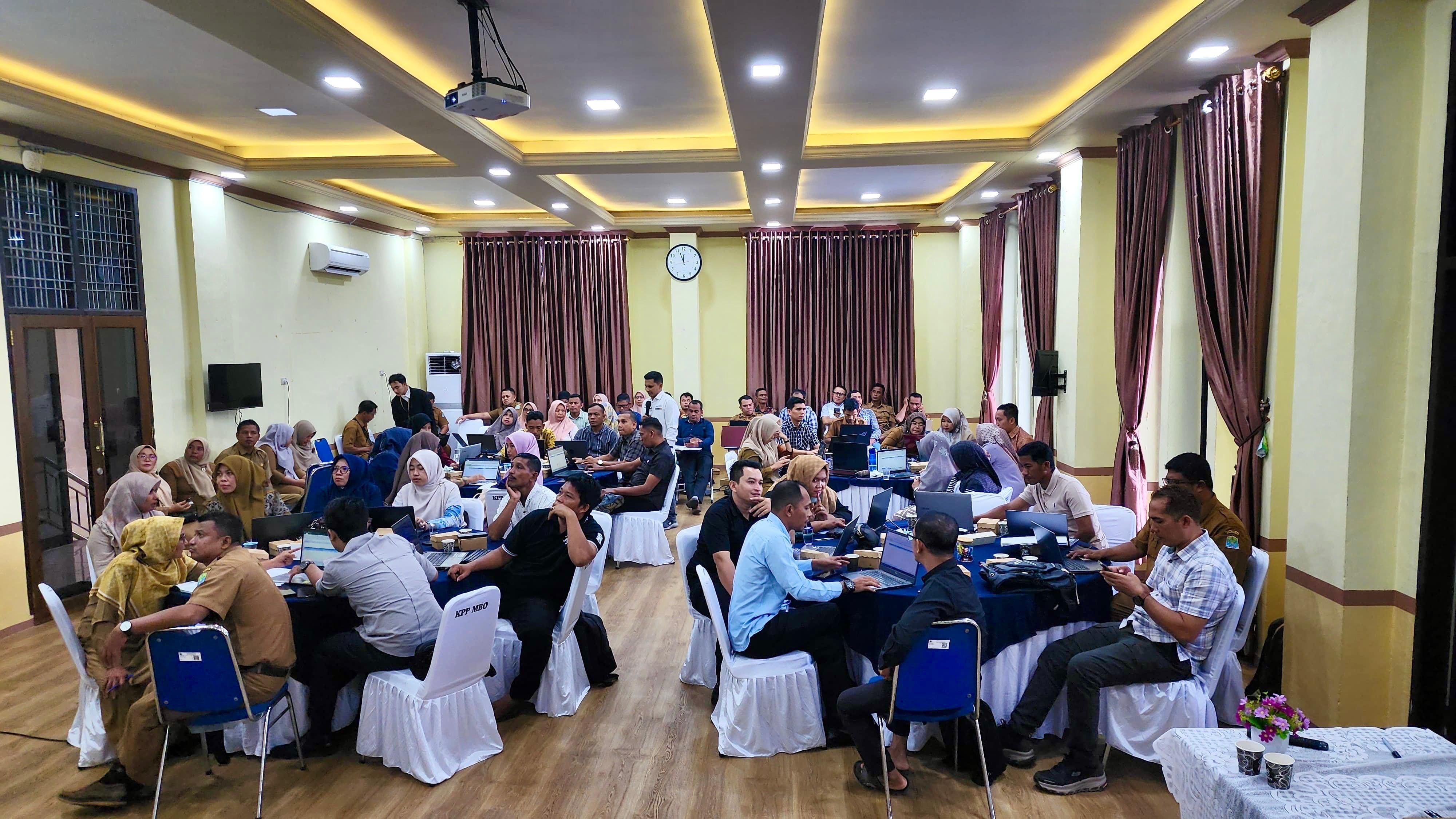 Kantor Pelayanan Pajak (KPP) Pratama Meulaboh bersama Kantor Pelayanan, Penyuluhan, dan Konsultasi Perpajakan (KP2KP) Calang menggelar bimbingan teknis (bimtek) aplikasi Coretax DJP bagi Bendahara Instansi Pemerintah di Aula KPP Pratama Meulaboh, Kabupaten Aceh Barat (Senin, 13/1). Bimtek ini dihadiri oleh seluruh Bendahara Satuan Kerja Perangkat Daerah (SKPD) di lingkungan Pemerintahan Aceh Jaya, termasuk Bendahara Kecamatan.