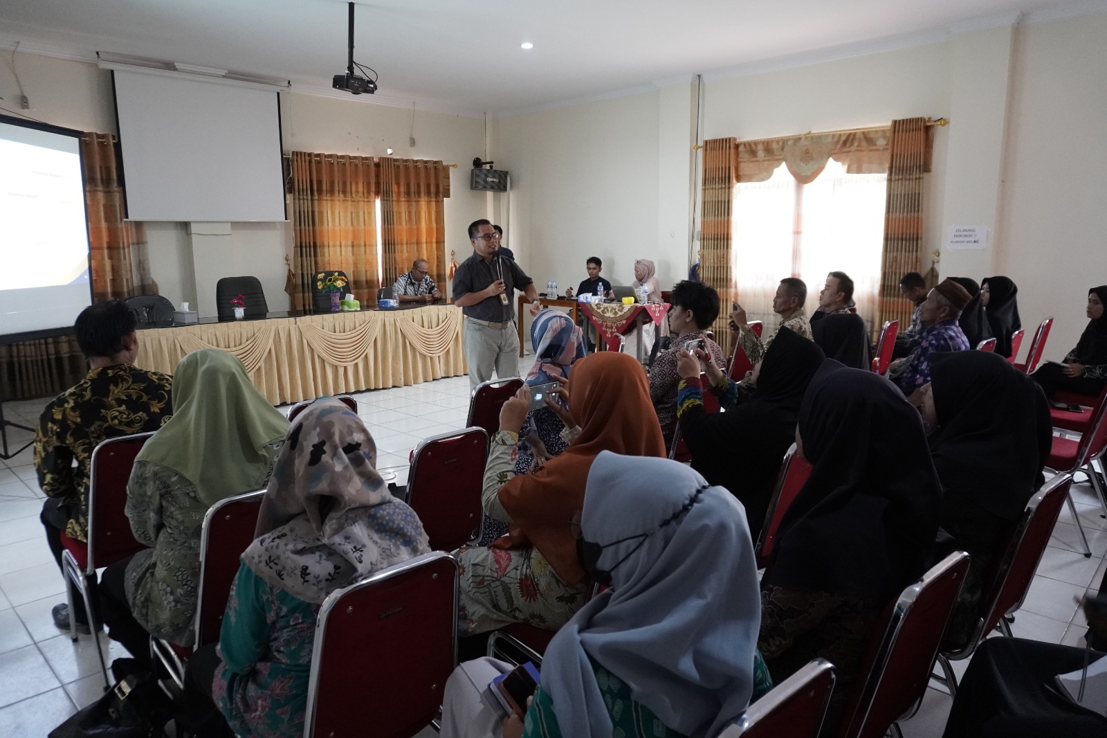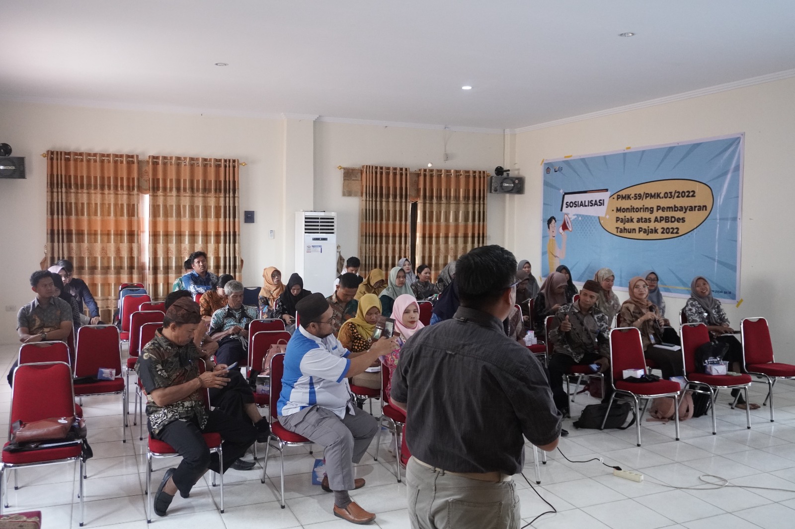 Kantor Pelayanan, Penyuluhan, dan Konsultasi Perpajakan (KP2KP) Muntok menyelenggarakan Sosialisasi Peraturan Menteri Keuangan nomor 59/PMK.03/2022 sekaligus Monitoring Pembayaran Pajak pada APBDes Tahun 2022 kepada Kepala Desa, Kepala Urusan Keuangan Desa, Bendahara Desa, dan/atau Perwakilan Desa di Aula Kantor Kecamatan Mentok, Kabupaten Bangka Barat (Kamis, 12/10).