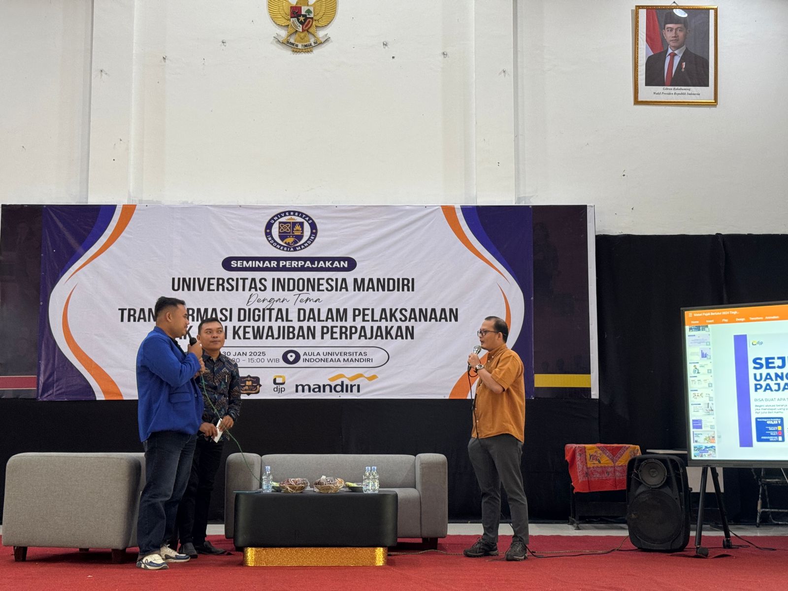Kantor Pelayanan Pajak (KPP) Pratama Natar menjadi narasumber utama dalam seminar perpajakan yang digelar oleh Universitas Indonesia Mandiri dengan tema Transformasi Digital dalam Pelaksanaan Hak dan Kewajiban Perpajakan di Aula Utama Universitas Indonesia Mandiri, Lampung Selatan (Kamis, 31/1).