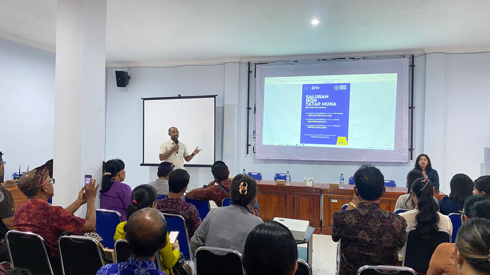 Tim dari KPP Pratama Tabanan yang hadir diwakili oleh Penyuluh Pajak Ni Putu Desriana Dewi dan dari KP2KP Negara dihadiri oleh Pelaksana Johanes Hubertus Djawa Nono. Sebagai narasumber, tim dari KPP Pratama Tabanan dan KP2KP Negara menjelaskan kewajiban perpajakan yang harus dilaksanakan oleh Badan Hukum Koperasi di Kabupaten Jembrana khususnya terkait PPh Final Peraturan Pemerintah (PP) 23 Tahun 2018 . Tim juga memaparkan materi Pemotongan, Pemungutan, dan Pelaporan Pajak Penghasilan (PPh) Pasal 4 ayat 2, PPh Pasal 21, PPh Pasal 23, dan Pajak Pertambahan Nilai (PPN).