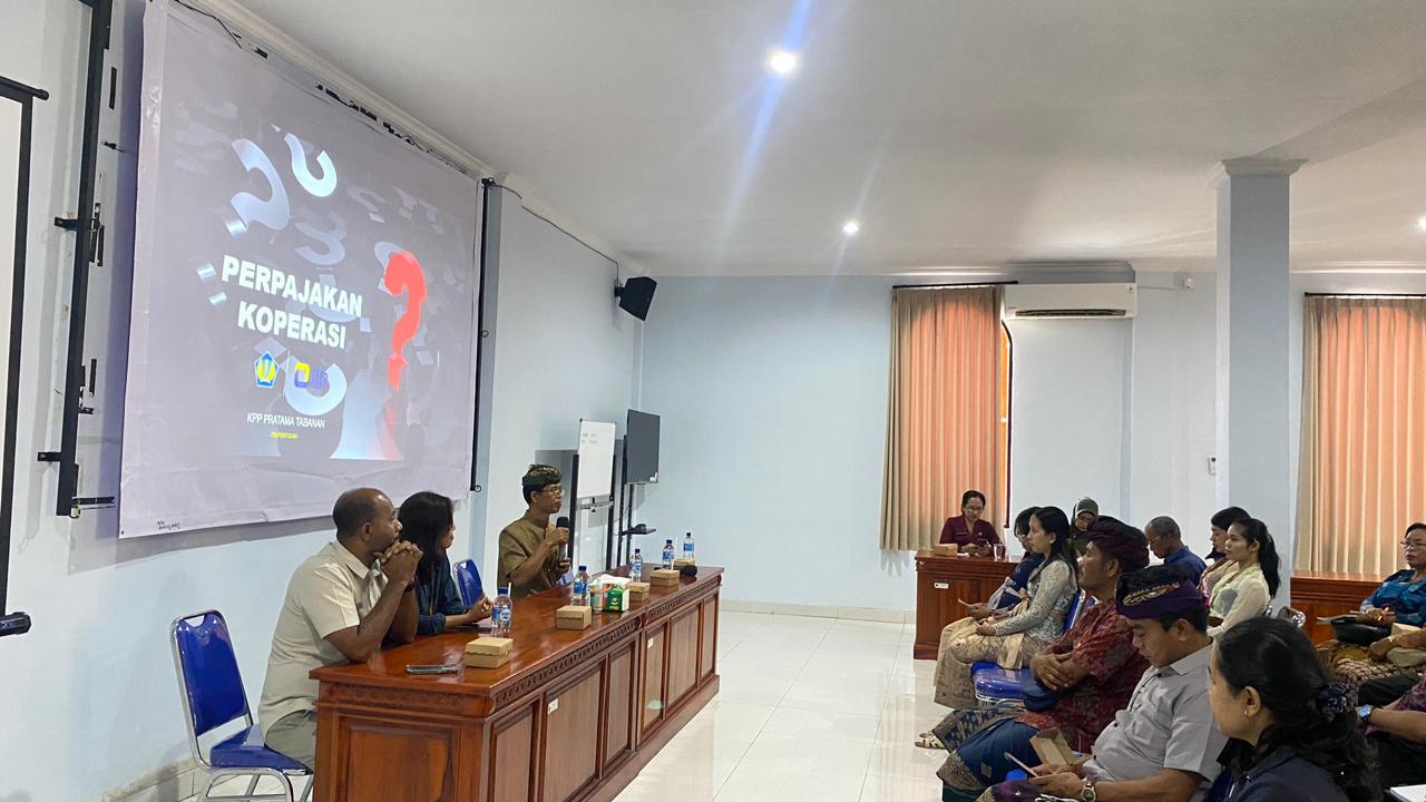 Kantor Pelayanan Pajak (KPP) Pratama Tabanan dan Kantor Pelayanan, Penyuluhan, dan Konsultasi Perpajakan (KP2KP) Negara memenuhi undangan Dinas Koperasi, Usaha Kecil dan Menengah, dan Perdagangan (DKUP) Kabupaten Jembrana untuk hadir sebagai narasumber dalam Focus Group Discussion (FGD) terkait Perhitungan Pajak Penghasilan (PPh) Final Badan Hukum Koperasi. Kegiatan ini dilaksanakan di Gedung Pusat Layanan Usaha Terpadu (PLUT) Kabupaten Jembrana, Kab. Jembrana (Kamis, 10/10).