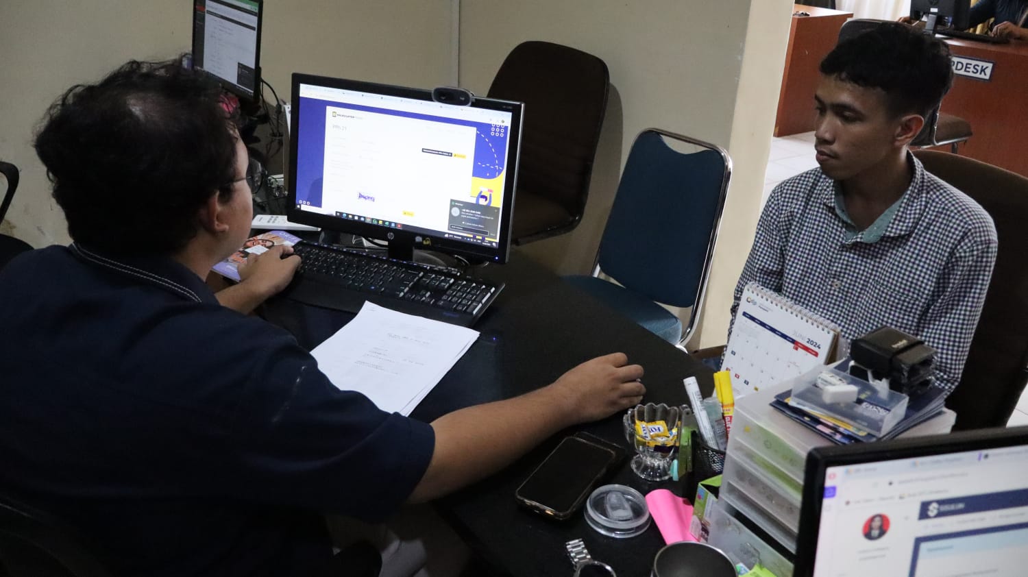 Pelaksana Kantor Pelayanan, Penyuluhan, dan Konsultasi Perpajakan (KP2KP) Pinrang memberikan konsultasi mengenai pemotongan pajak terhadap seorang Karyawan PT. CRJM berinisial RT di Tempat Pelayanan Terpadu (TPT) KP2KP Pinrang (Rabu, 12/6). RT bertanya mengenai jumlah pemotongan pajak yang berubah dari tahun sebelumnya.