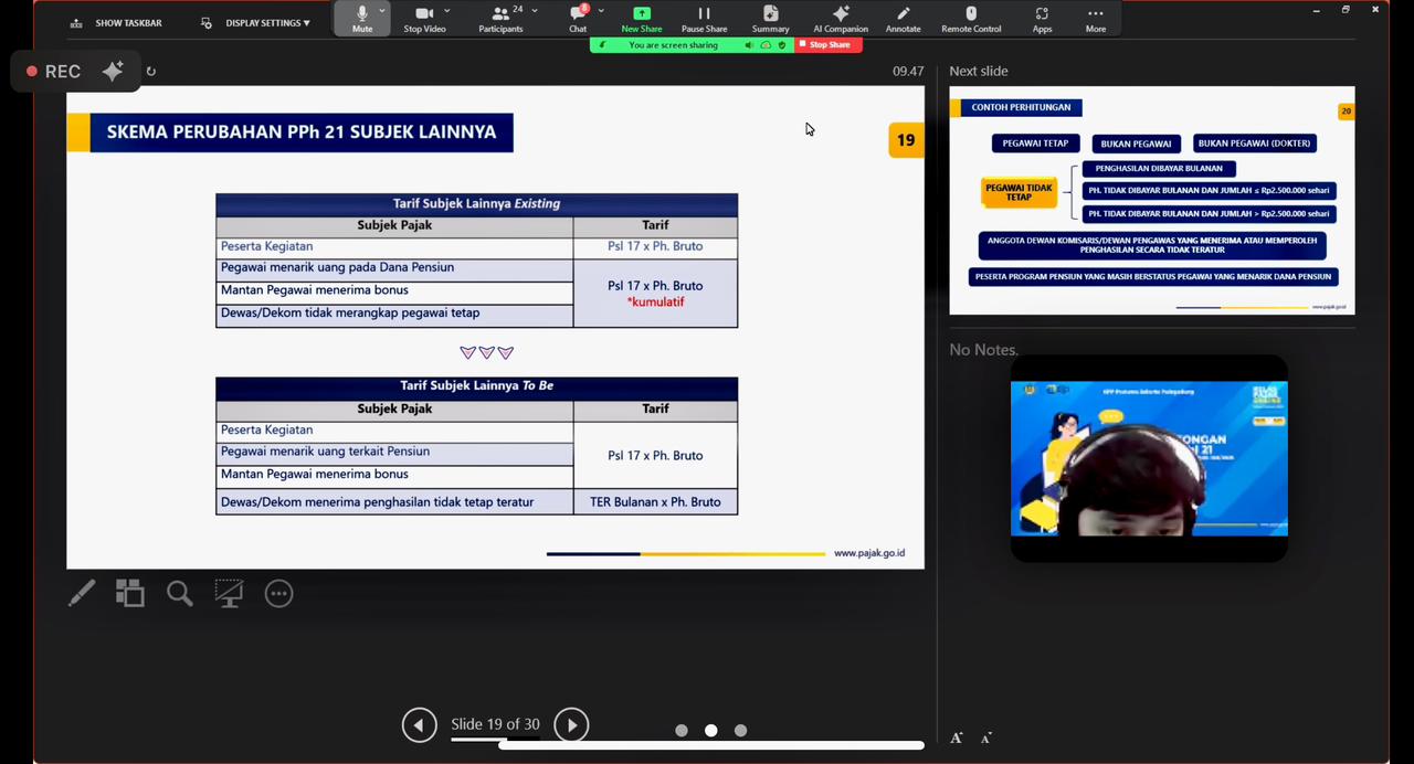 Kelas pajak kali ini mengusung tema “Pemotongan Pajak Penghasilan (PPh) Pasal 21 sesuai Peraturan Pemerintah (PP) Nomor 58 Tahun 2023 dan Peraturan Menteri Keuangan (PMK) Nomor 168 Tahun 2023”. Kegiatan diselenggarakan oleh Tim Penyuluh Pajak KPP Pratama Jakarta Pulogadung yang berlangsung mulai pukul 09.00 s.d. 11.00 WIB. Bersama dengan Tim Penyuluh Pajak, Eko Priyono dan Dede Saptian, wajib pajak diberikan pemahaman dan penjelasan secara mendalam terkait dua aturan terbaru yang membawa perubahan penting dalam kebijakan Pajak Penghasilan (PPh) 21, khususnya terkait dengan karyawan.