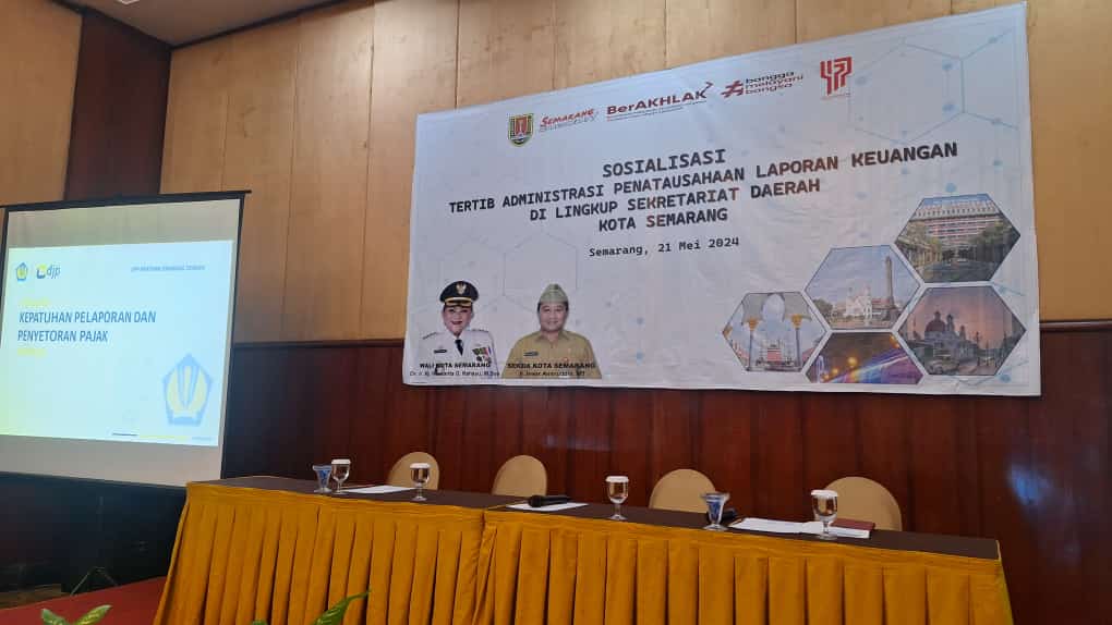 Kantor Pelayanan Pajak (KPP) Pratama Semarang Tengah memenuhi undangan Sekretariat Daerah (Setda) Kota Semarang untuk hadir sebagai narasumber dalam Sosialisasi Tertib Administrasi Penatausahaan Laporan Keuangan di Lingkup Setda Semarang. Kegiatan ini dilaksanakan di Ruang Merapi 2 Lobby Floor Hotel Novotel, Kota Semarang, Jawa Tengah (Selasa, 21/5).