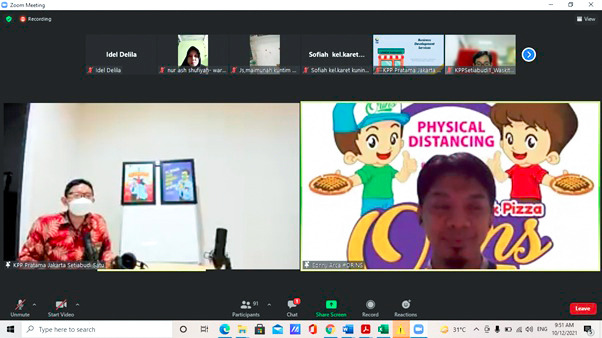 Kantor Pelayanan Pajak (KPP) Pratama Jakarta Setiabudi Satu dan KPP Pratama Jakarta Setiabudi Dua menyelenggarakan Business Development Services (BDS) dengan tema Jurus Bisnis Kuliner Bertahan di Masa Pandemi secara daring di Jakarta (Selasa, 12/10).