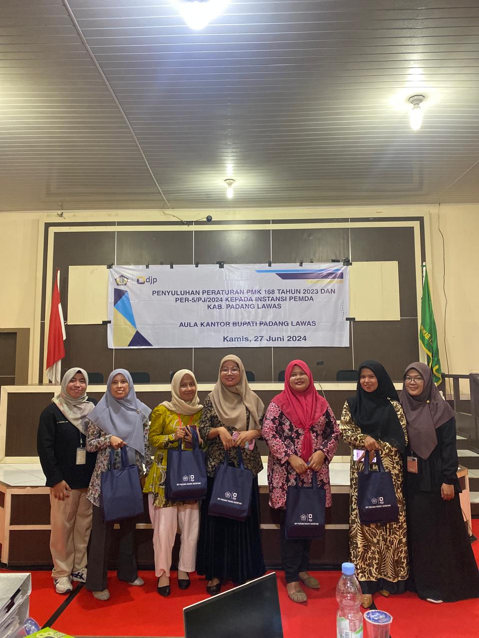 Kantor Pelayanan Pajak (KPP) Pratama Padang Sidempuan (Pajak Sidempuan) melakukan penyuluhan peraturan perpajakan Peraturan Menteri Keuangan Nomor 168 Tahun 2023 dan Peraturan Direktur Jenderal Pajak nomor PER-5/PJ/2024 kepada Instansi Pemerintah Daerah Kabupaten Padang Lawas bertempat di Aula Kantor Bupati Kabupaten Padang Lawas (Kamis, 28/6). Hadir dari Pajak Sidempuan Penyuluh Pajak Herfina Dewi Siregar dan Indah Lestari Simanungkalit.