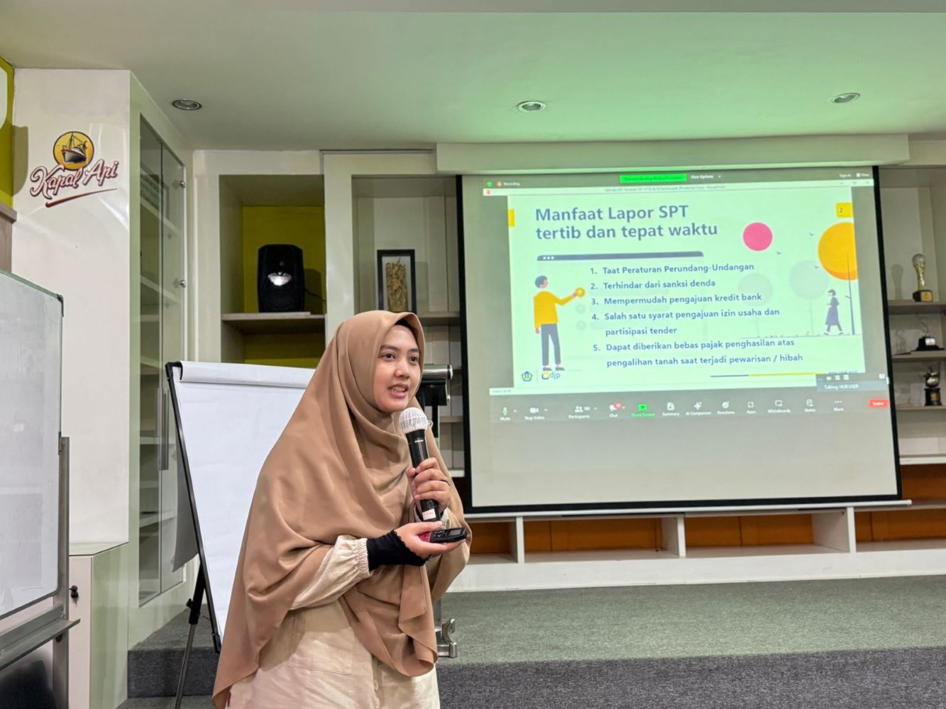 Dalam kesempatan tersebut juga terdapat penyampaian materi oleh Eka Zuniati tentang pengisian Surat Pemberitahuan (SPT) Tahunan melalui e-Filing. Eka menjelaskan bagaimana pengisian pada kolom harta dan utang, PPh yang dipotong dan/atau dipungut, penentuan Penghasilan Tidak Kena Pajak (PTKP), serta pengisian penghasilan sesuai dengan bukti potong yang diterima. Eka juga menghimbau kepada karyawan PT Santos Jaya Abadi untuk segera melaporkan SPT Tahunan PPh Orang Pribadi sebelum batas waktu melalui e-Filing supaya lebih cepat dan mudah.
