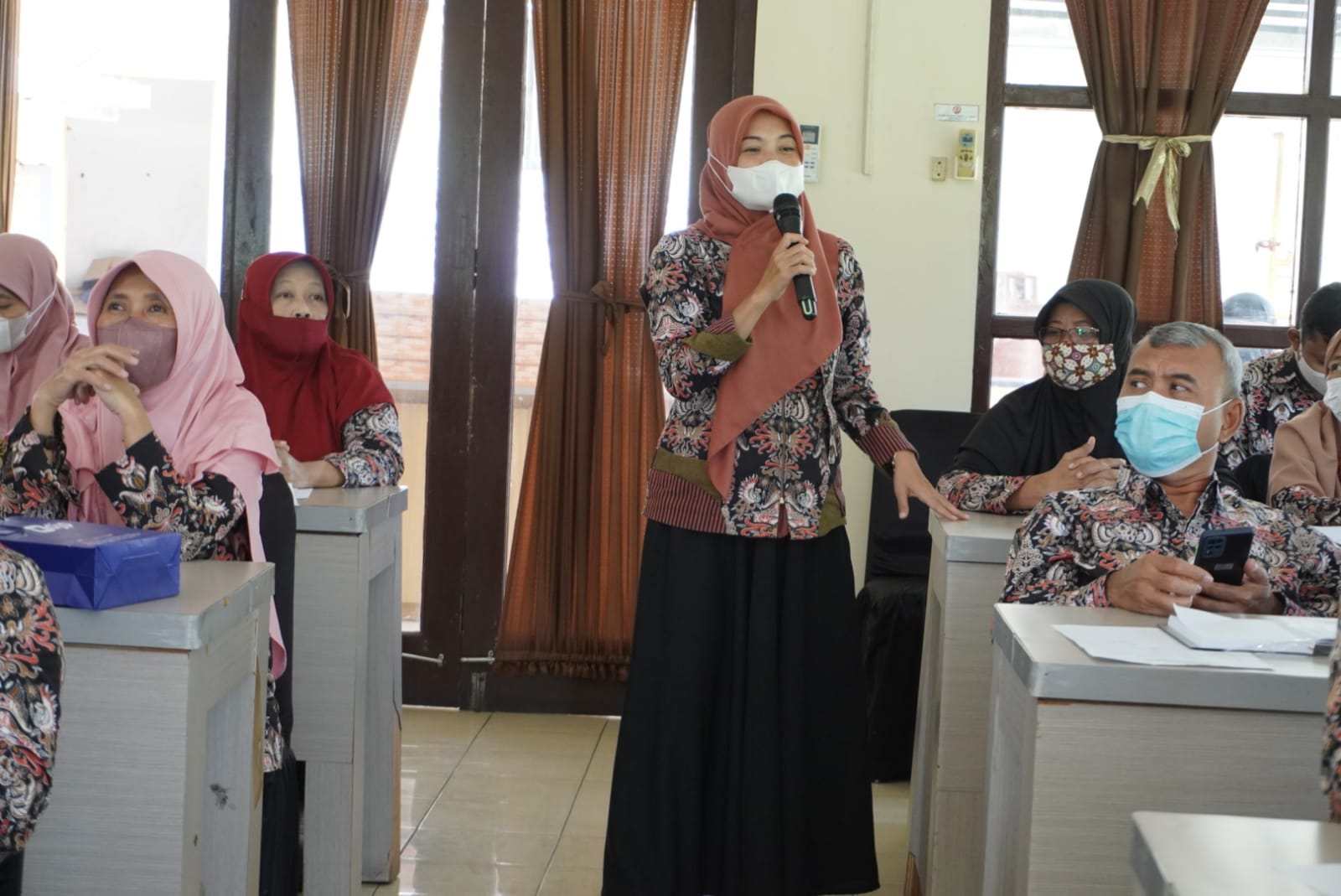 Tim penyuluh pajak KPP Pratama Sleman terdiri dari fungsional penyuluh dan asisten penyuluh. Fungsional Penyuluh Puri Handayani membuka acara dan memberikan sambutan. Asisten Penyuluh Melina Susilowati memaparkan materi tentang kewajiban perpajakan bagi bendahara instansi pemerintah dan penggunaan aplikasi e-Bupot unifikasi instansi pemerintah. Para peserta mendengarkan dan menyimak penjelasan dari pemateri.