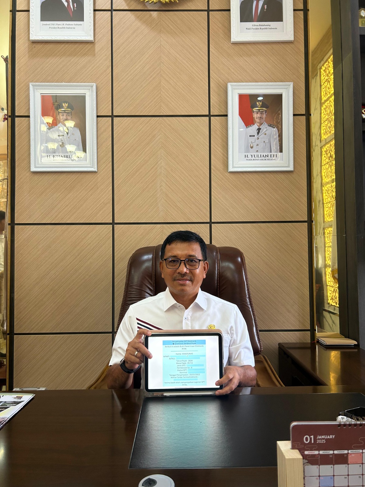 Sekretaris Daerah Kabupaten Solok Selatan Syamsurizaldi juga memberikan imbauan kepada seluruh Aparatur Sipil Negara (ASN) di lingkungan pemerintah daerah. "Sebagai ASN, kita harus menjadi contoh dalam melaksanakan kewajiban perpajakan. Kalau bisa sekarang, kenapa harus nanti? Lapor SPT hari ini. Lebih awal lebih nyaman," ujarnya.