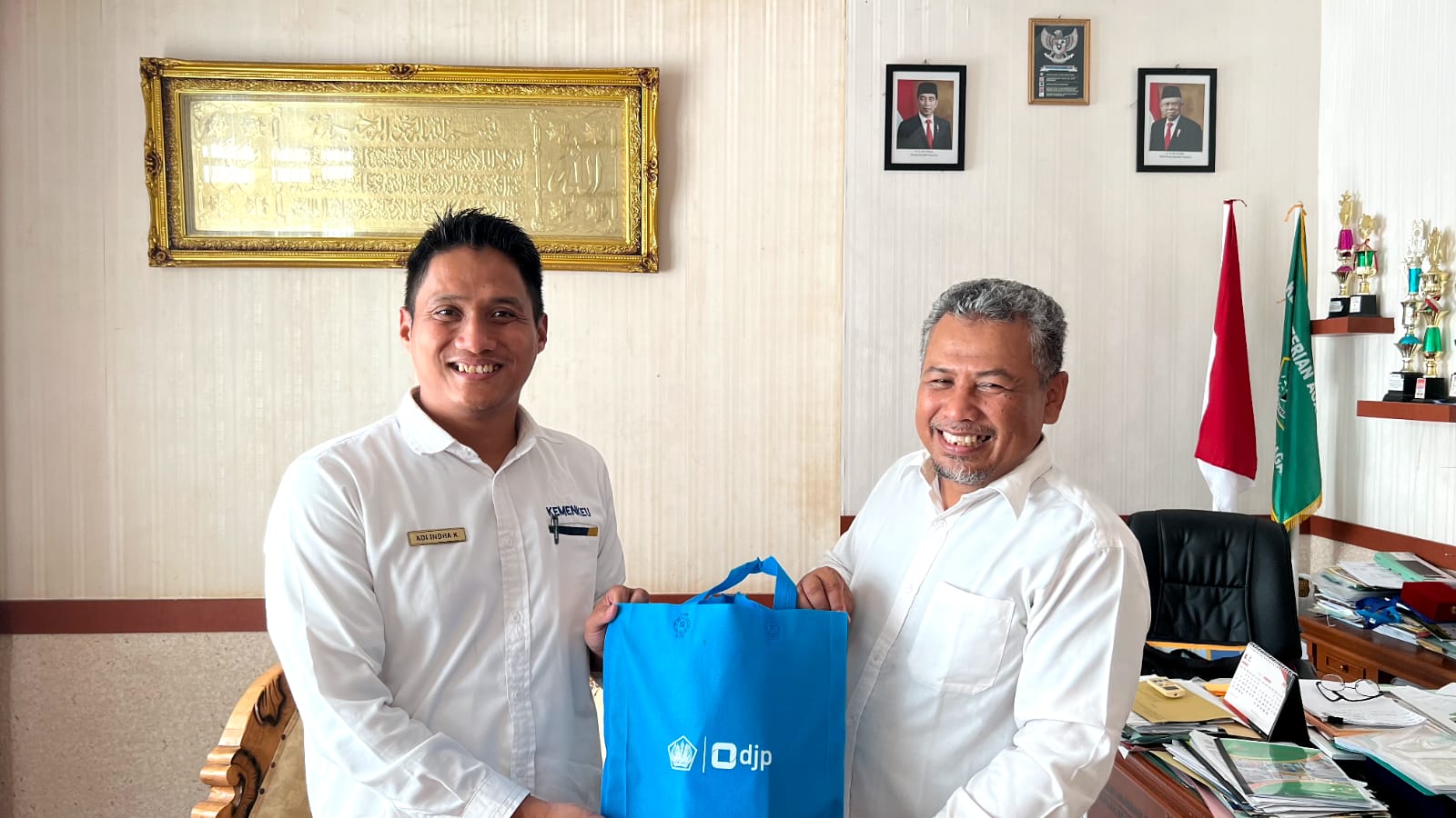 Kepala Kantor Pelayanan, Penyuluhan dan Konsultasi Perpajakan (KP2KP) Suka Makmur Adi Indra Kurniawan melakukan kunjungan kerja ke Kantor Kementerian Agama (Kemenag) Nagan Raya (Senin, 29/01). Kunjungan ini dilakukan dalam rangka koordinasi pelaporan Surat Pemberitahuan (SPT) Tahunan dan pemadanan Nomor Induk Kependudukan (NIK) dan Nomor Pokok Wajib Pajak (NPWP) bagi pegawai dan seluruh guru yang berada di wilayah kerja Kantor Kementerian Agama Nagan Raya.