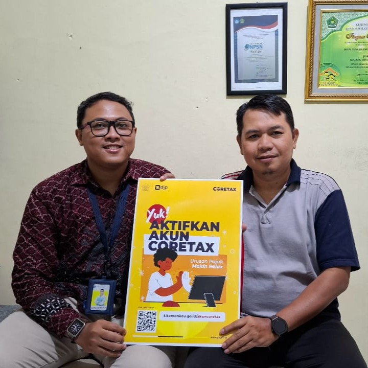KPP Pratama Tangerang Barat mengimbau seluruh pegawai MAN 1 Kota Tangerang untuk segera melakukan aktivasi akun Coretax DJP dengan mengikuti tata cara yang telah disampaikan melalui bendahara sekolah maupun poster yang tersedia, demi memastikan kelancaran dan ketertiban pemenuhan kewajiban perpajakan.