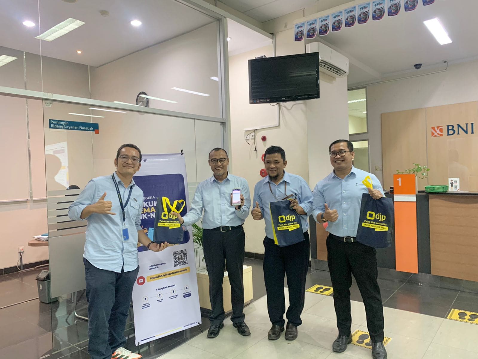 Pegawai Kantor Pelayanan, Penyuluhan, dan Konsultasi Perpajakan (KP2KP) Tanjung Balai mengadakan Sosialisasi Pelaporan SPT Tahunan dan Pemadanan NIK-NPWP di Kantor BNI Kota Tanjung Balai (Rabu, 22/2).