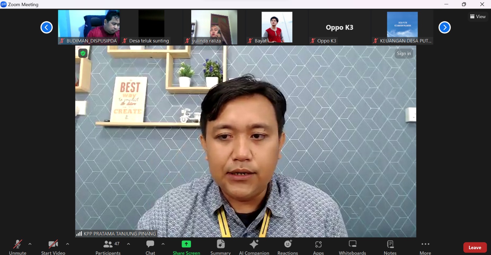Kantor Pelayanan Pajak (KPP) Pratama Tanjung Pinang menyelenggarakan sosialisasi tentang Peraturan Pemerintah Nomor 58 Tahun 2023 (PP 58/2023) yang mengatur tarif pemotongan Pajak Penghasilan Pasal 21 atas penghasilan sehubungan dengan pekerjaan, jasa, atau kegiatan Wajib Pajak Orang Pribadi kepada 38 bendahara instansi pemerintah, kecamatan dan desa sekabupaten Kepulauan Anambas (Kamis, 7/3). Kegiatan sosialisasi berlangsung secara daring melalui aplikasi Zoom Meetings dari Kota Tanjungpinang.