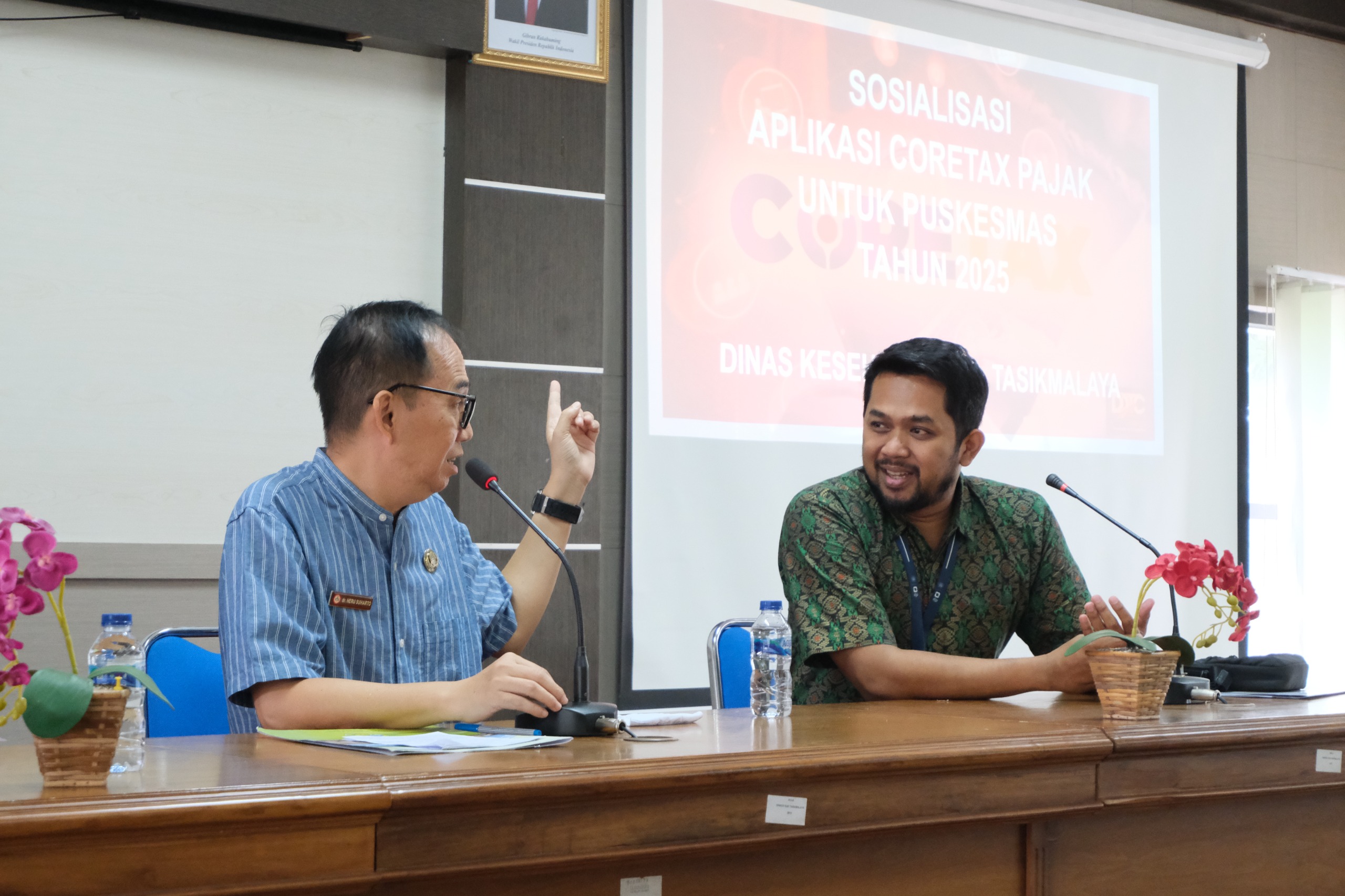 Sebanyak 40 bendahara Pusat Kesehatan Masyarakat (Puskesmas) se-Kabupaten Tasikmalaya mengikuti kegiatan sosialisasi Coretax DJP di Aula Dinas Kesehatan (Dinkes) Kabupaten Tasikmalaya, Kabupaten Tasikmalaya (Jumat, 17/2).