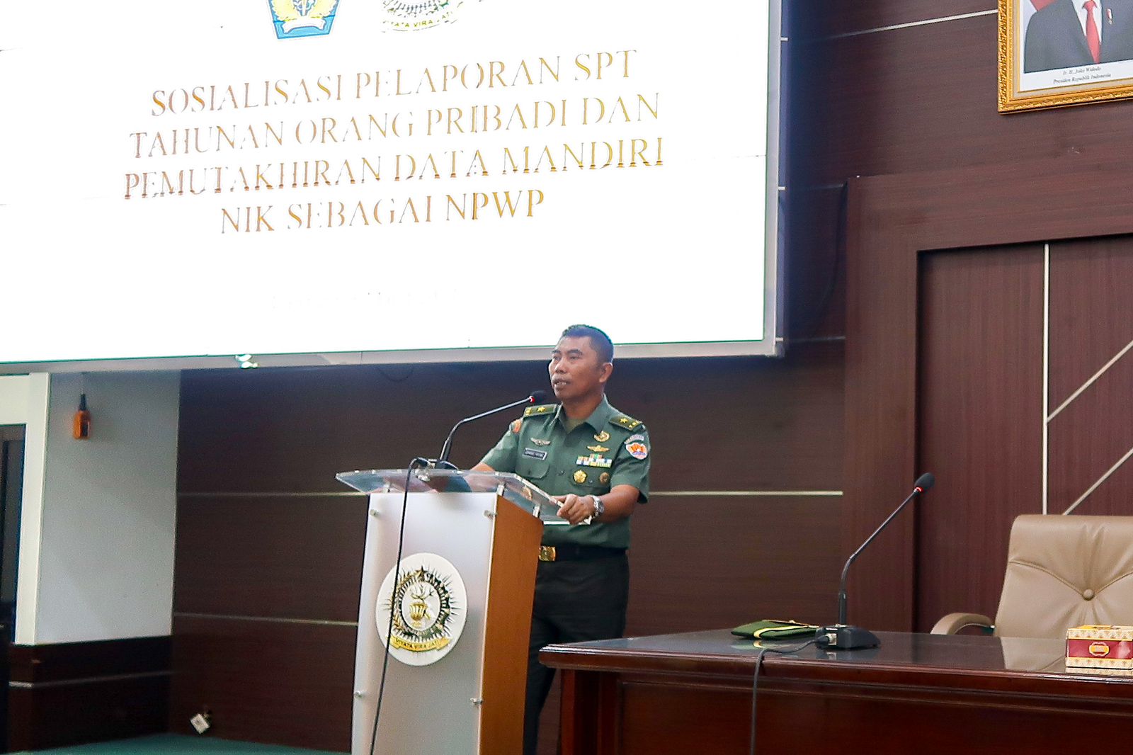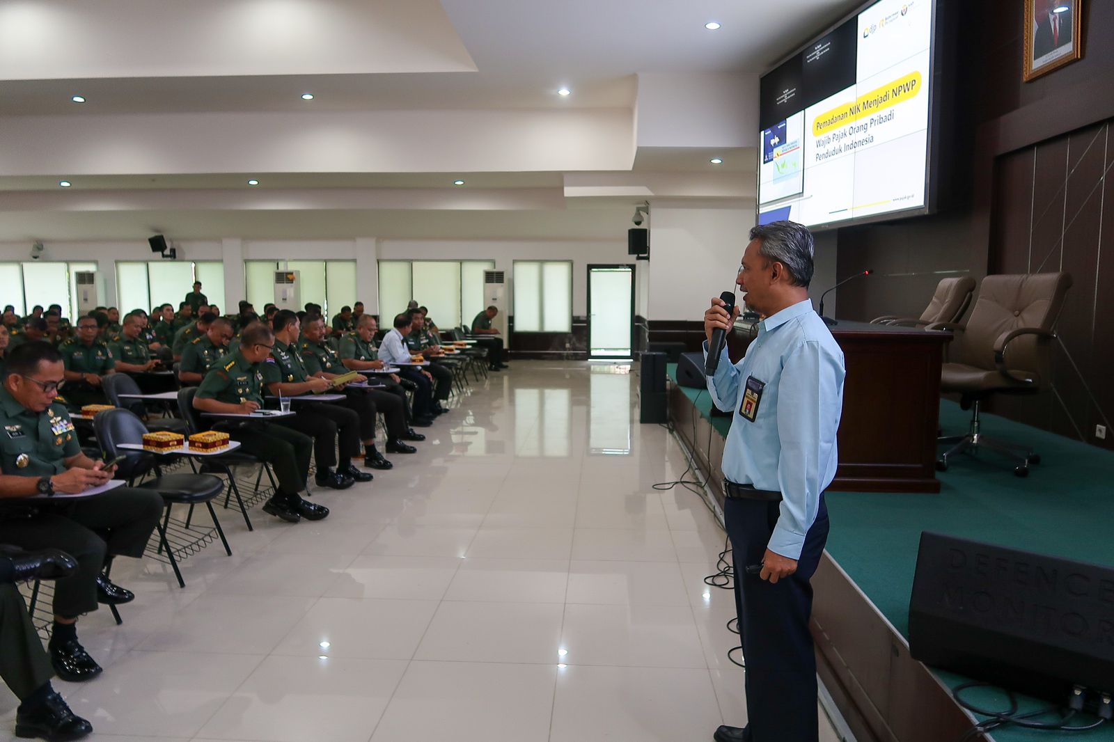 Kantor Pelayanan Pajak (KPP) Pratama Bandung Tegallega menyelenggarakan sosialisasi pemutakhiran data mandiri NIK sebagai NPWP dan pelaporan SPT Tahunan di Sekolah Staf dan Komando Angkatan Darat (SESKOAD), Jalan Gatot Subroto No. 96, Kota Bandung (Rabu, 8/3).