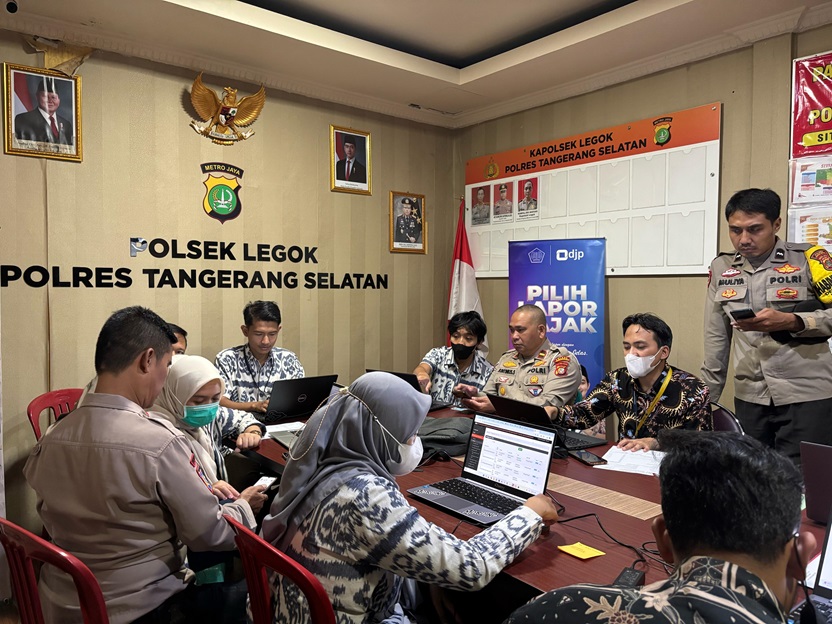 Sebagai bagian dari upaya untuk mempermudah akses masyarakat terhadap layanan perpajakan, Petugas Kantor Pelayanan Pajak (KPP) Pratama Tigaraksa menggelar Layanan di Luar Kantor di Kepolisian Sektor (Polsek) Legok, Kabupaten Tangerang (Kamis, 21/3). Kegiatan ini bertujuan memberikan bimbingan kepada para Anggota Polsek Legok dalam pengisian Surat Pemberitahuan (SPT) Tahunan melalui aplikasi DJP Online dan membantu proses EFIN untuk reset password.