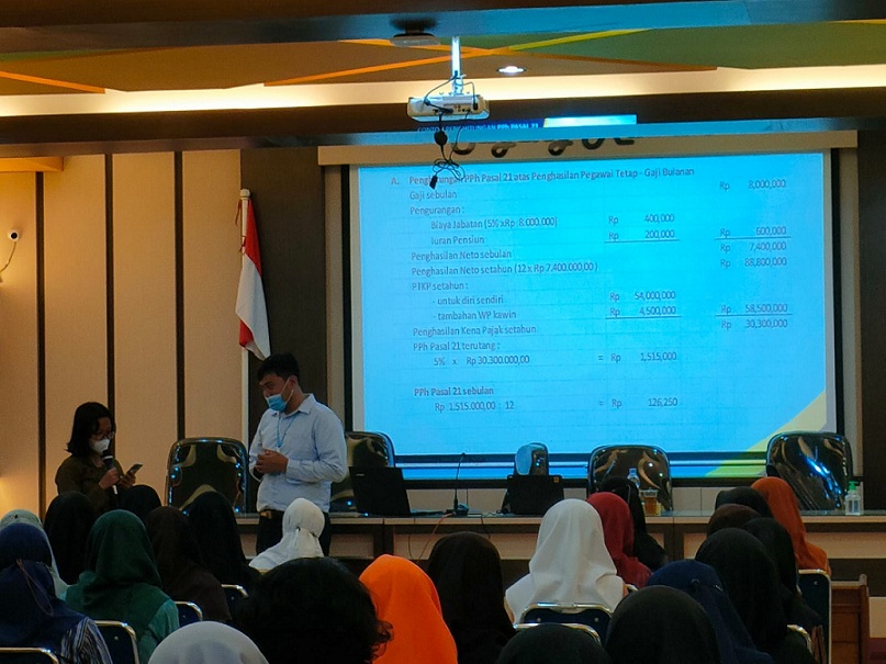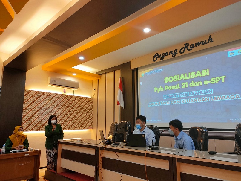 Kepala SMK Negeri 1 Wonosari Moh Rokhis menyambut baik kegiatan ini. Ketua penyelenggara kegiatan Kusumastuti membuka acara dan sekaligus memberikan sambutan. Selanjutnya, Asisten Penyuluh Pajak Mahir KPP Pratama Wonosari Dior Panji Putra Negara memberikan edukasi terkait PPh Pasal 21 dan contoh perhitungan atas PPh Pasal 21. Jainal Abidin selaku Asisten Penyuluh Pajak Terampil KPP Pratama Wonosari memberikan penjelasan terkait pengisian SPT Tahunan PPh Orang Pribadi. Peserta antusias dan aktif dalam sesi diskusi dan tanya jawab. Kusumastuti berharap agar KPP Pratama Wonosari dapat mengadakan acara seperti ini kembali di SMK Negeri 1 Wonosari. Acara berjalan dengan lancar dan diakhiri dengan foto bersama.