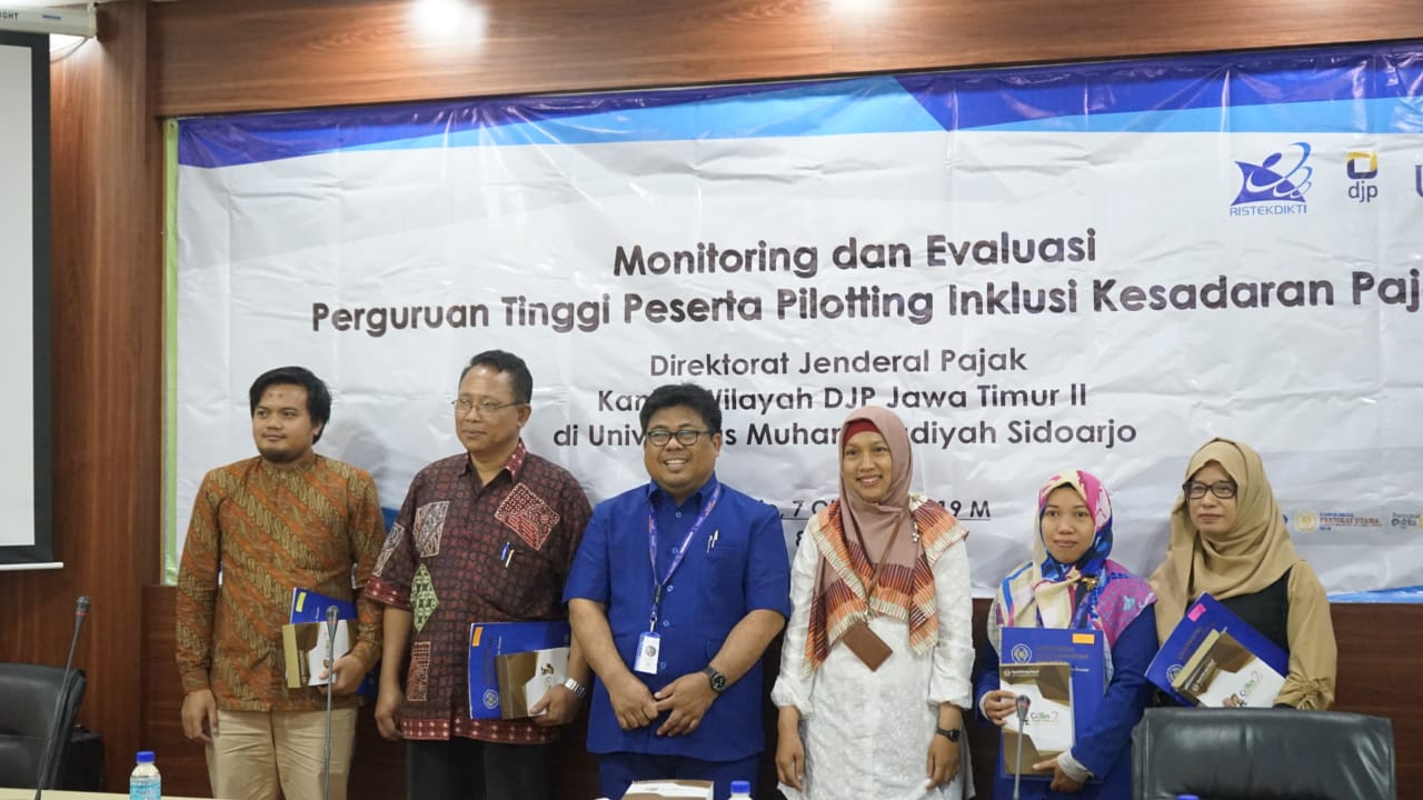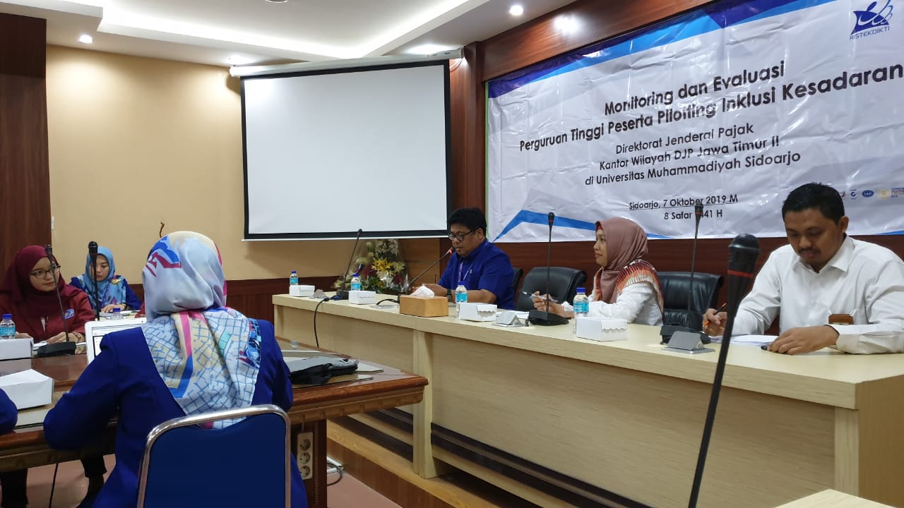 Direktorat P2Humas Kantor Pusat DJP didampingi Kanwil DJP Jawa Timur II melakukan monitoring dan evaluasi terhadap salah satu campus piloting Inklusi Kesadaran Pajak ke Universitas Muhammadiyah Sidoarjo (UMSIDA) yang merupakan salah satu dari 12 campus piloting di wilayah kerja Kanwil DJP Jawa Timur II (Senin, 7/10).