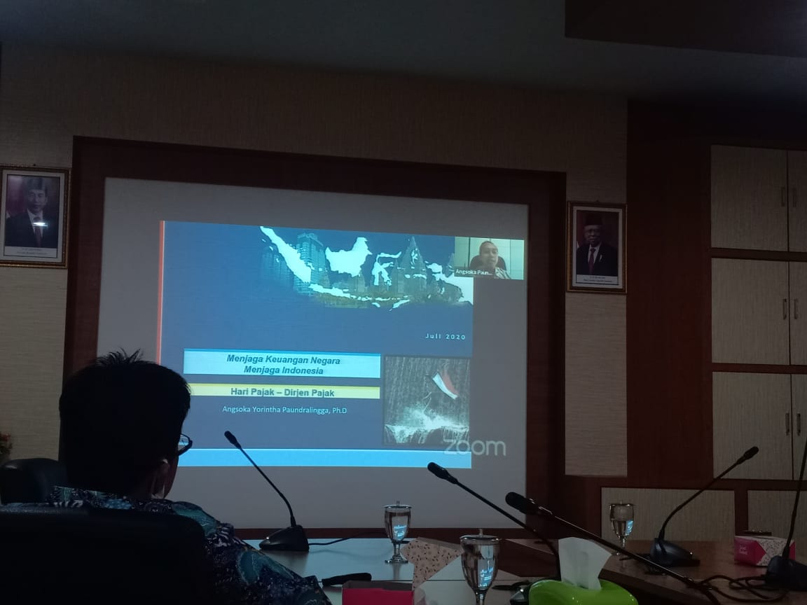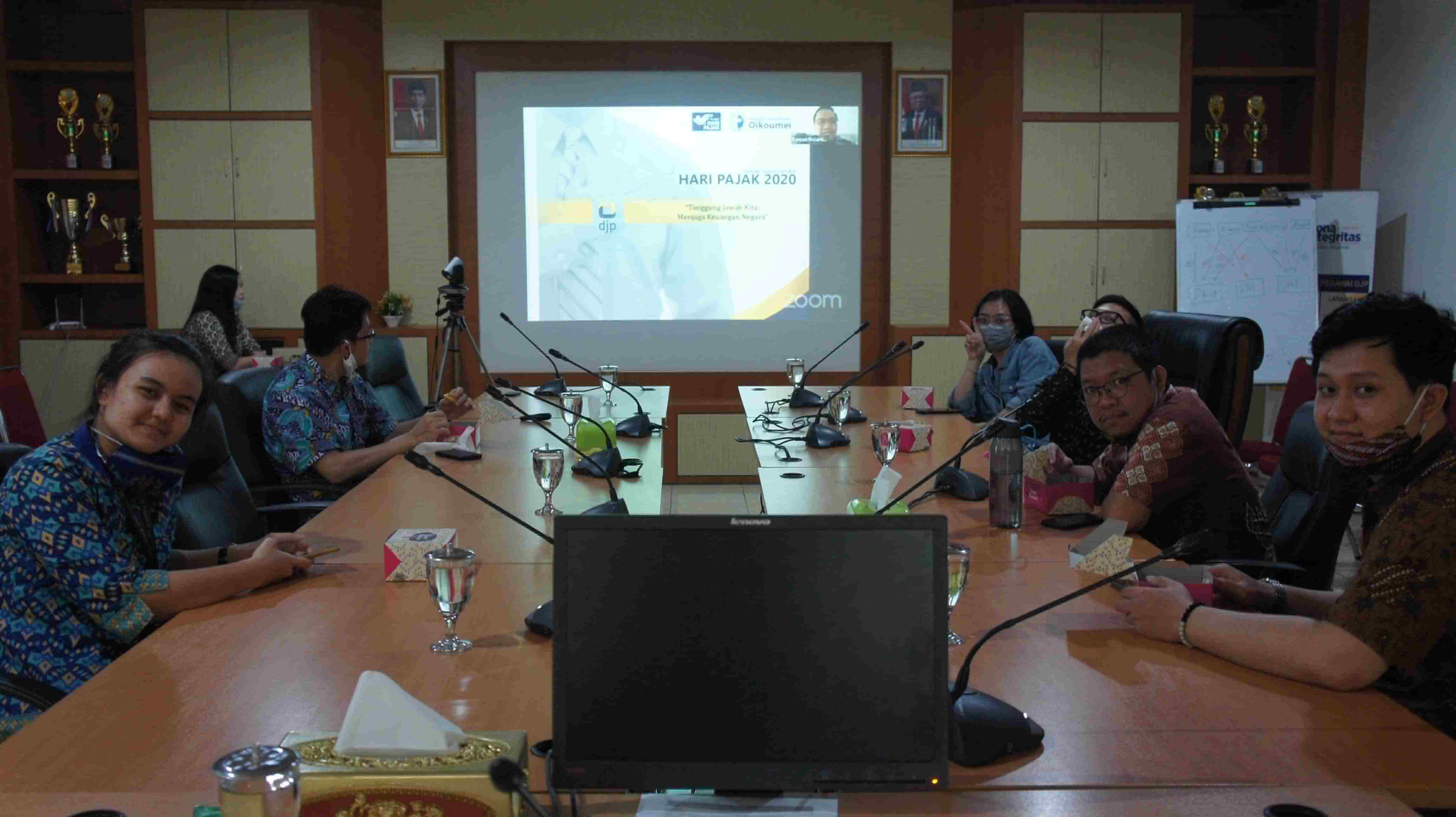 Dalam rangka peringatan Hari Pajak Tahun 2020, para pegawai Kristiani di KPP Pratama Pontianak Barat mengikuti ibadah secara daring melalui aplikasi Zoom Cloud Meetings yang diselenggarakan oleh Persekutuan Oikoumene DJP di Ruang Rapat KPP Pratama Pontianak Barat, Kalimantan Barat (Jumat, 10/7). Kepala SubDirektorat Hubungan Masyarakat Perpajakan Ani Natalia hadir sebagai pemandu ibadah kali ini.