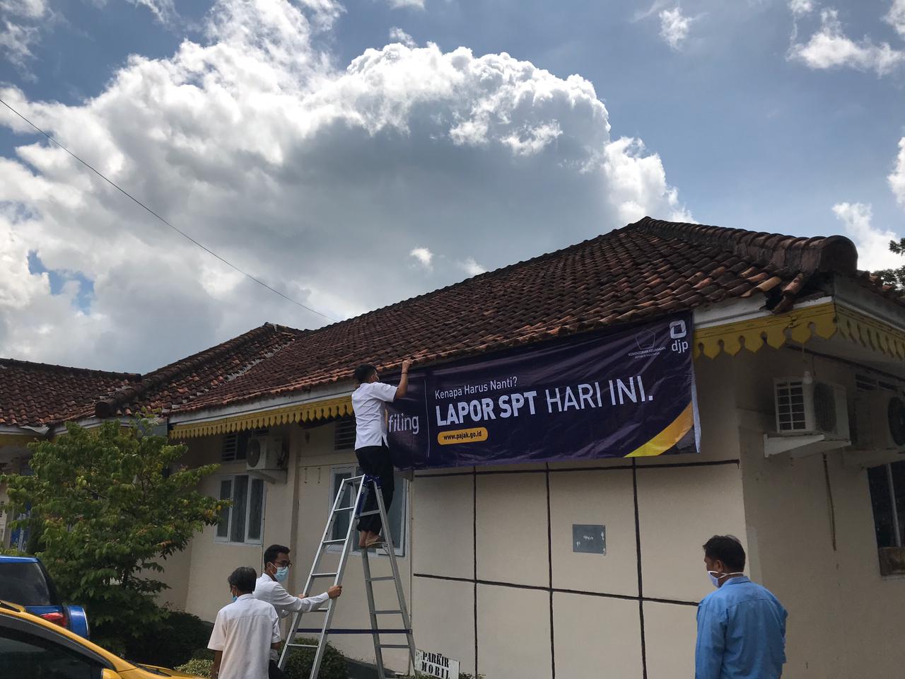 Pemasangan spanduk berisikan ajakan untuk melaporkan SPT Tahunan secara e-Filing yaitu pelaporan SPT Tahunan secara online melalui situs website www.pajak.go.id yang memudahkan wajib pajak untuk lapor SPT Tahunan, karena bisa dilakukan kapan saja dan di mana saja.
