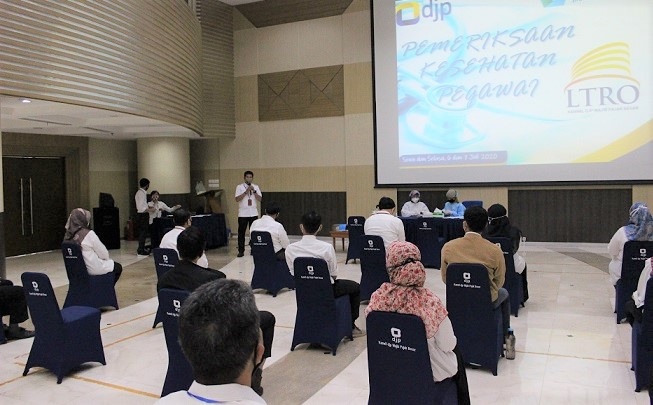 Kanwil DJP Wajib Pajak Besar (WP Besar) mengadakan pemeriksaan kesehatan pegawai dengan metode rapid test di Aula Sinergi 1 lantai 2 gedung Dr. K.R.T Radjiman Wedyodiningrat (Selasa, 07/07). Kegiatan yang dibagi menjadi dua sesi sejak Senin, 7 Juli 2020 ini diadakan sebagai bentuk komitmen Kanwil DJP Wajib Pajak Besar dalam memberikan pelayanan yang optimal kepada wajib pajak sesuai standar protokol kesehatan kenormalan baru.