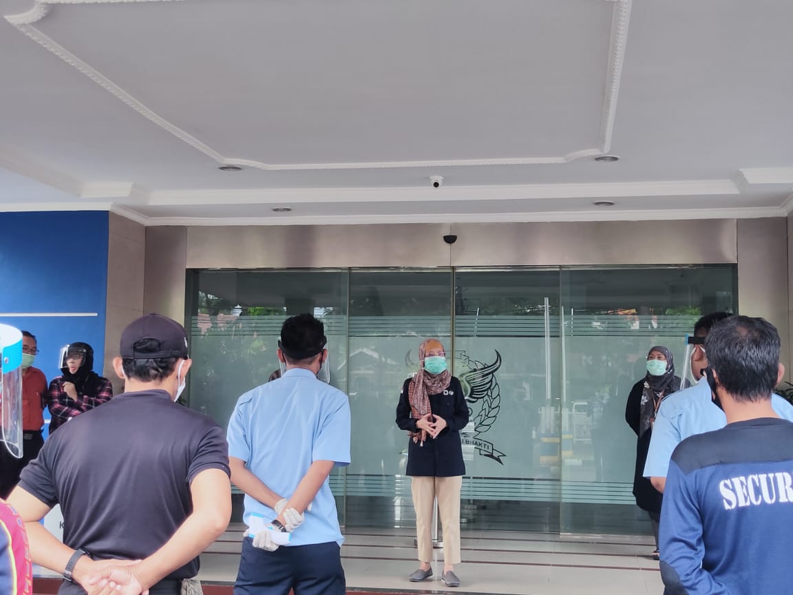 KPP Pratama Serang Barat mengadakan simulasi pelayanan secara tatap muka dalam kondisi normal baru atau new normal di Tempat Pelayanan Terpadu (TPT) KPP Pratama Serang Barat (Kamis, 11/6). Simulasi ini dipimpin langsung oleh Kepala KPP Pratama Serang Barat dan Serang Timur Triyani Yuningsih dan Yatmi Pujiastuti. "Di masa new normal nanti, tim security diharapkan dapat selektif dalam mengecek setiap orang yang datang," imbau Triyani Yuningsih saat simulasi.