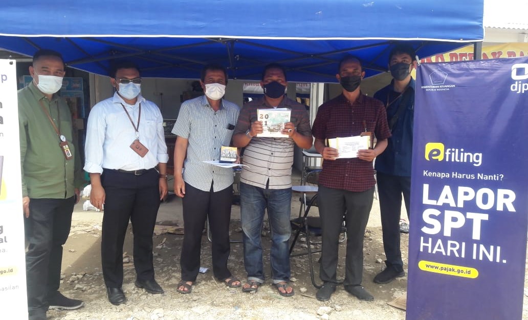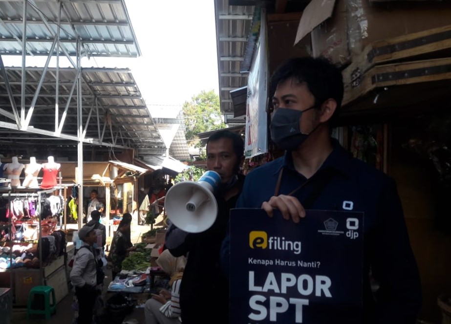Terdiri dari Kepala Seksi Pengawasan dan Konsultasi III Indro Sadono beserta tiga orang Account Representative, mereka mengimbau para pedagang untuk melaporkan SPT sebelum 31 Maret 2021.