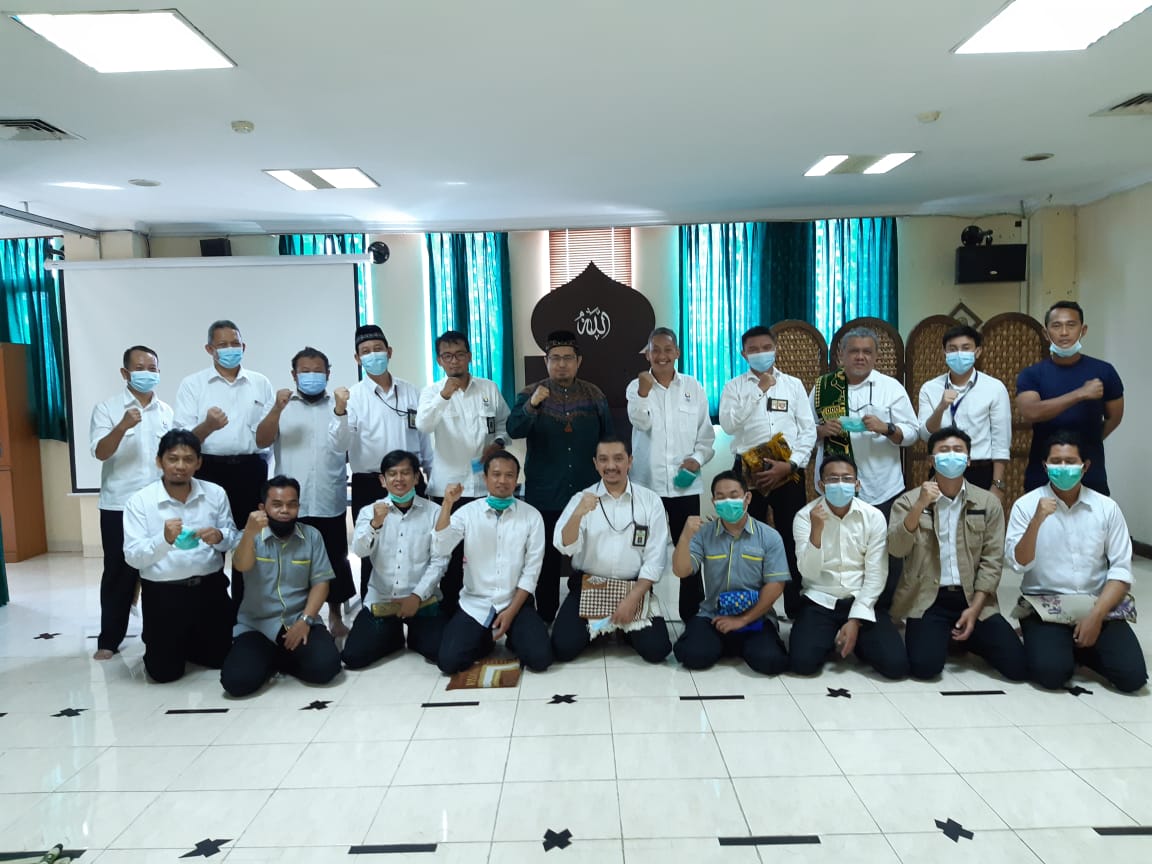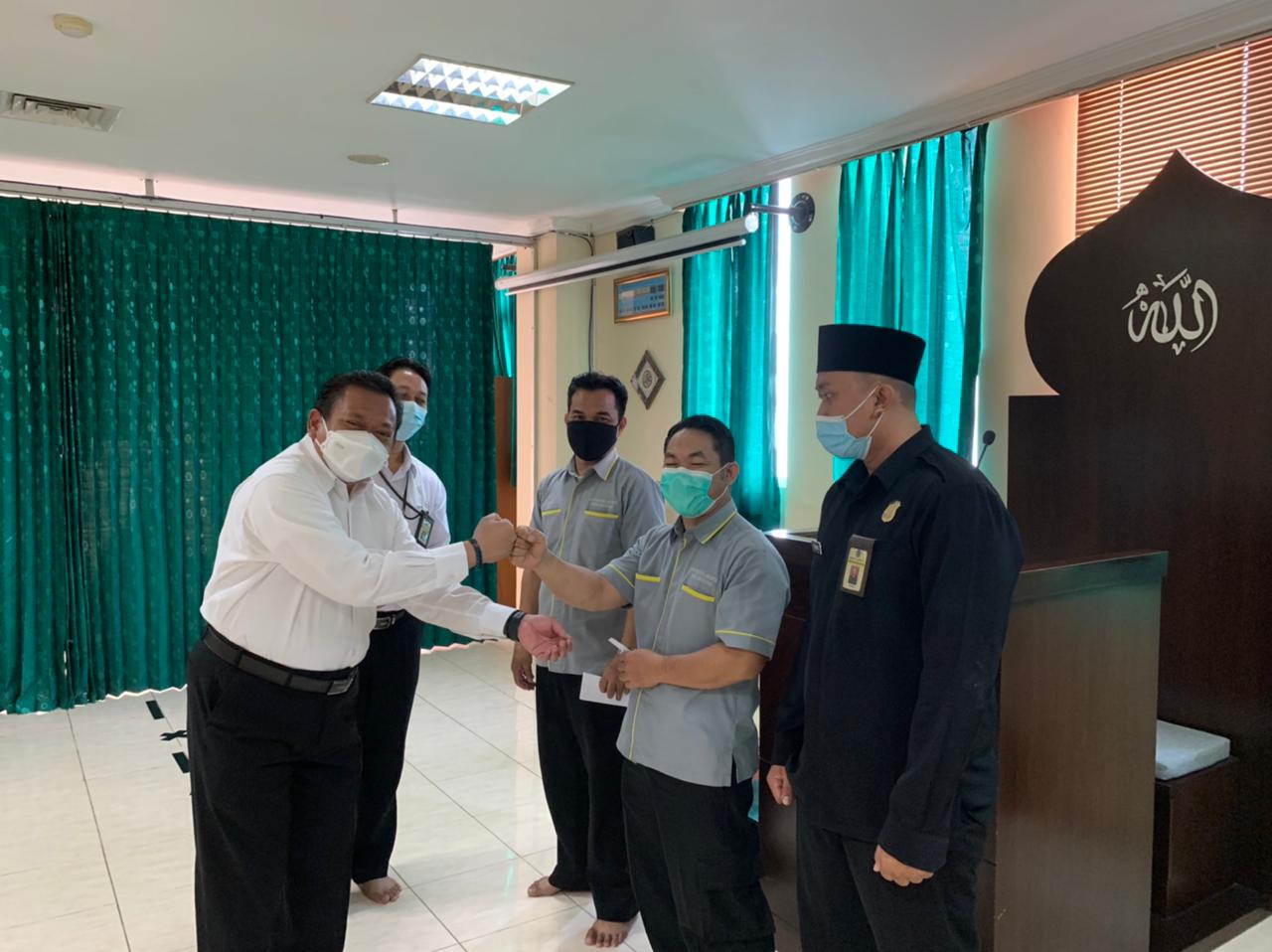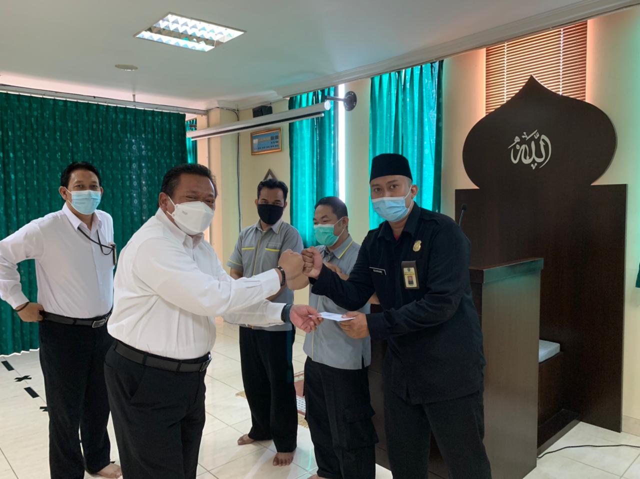 Dewan Kemakmuran Masjid (DKM) An Nur Kantor Pelayanan Pajak (KPP) Pratama Jakarta Tanah Abang Dua dan Tiga memberikan santunan kepada satuan pengamanan, petugas kebersihan, dan pramubakti yang bertugas di lingkungan KPP Pratama Jakarta Tanah Abang Dua dan Tiga di Jakarta (Senin, 10/5).