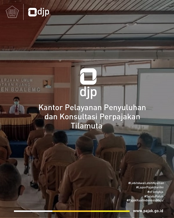 Kantor Pelayanan, Penyuluhan, dan Konsultasi Perpajakan (KP2KP) Tilamuta menggelar kegiatan Edukasi dan Dialog Perpajakan tentang Pelaporan SPT Tahunan secara daring melalui e-Filing di Kantor Dinas Pekerjaan Umum dan Penataan Ruang (PUPR) Kabupaten Boalemo, Gorontalo (Senin, 1/3).