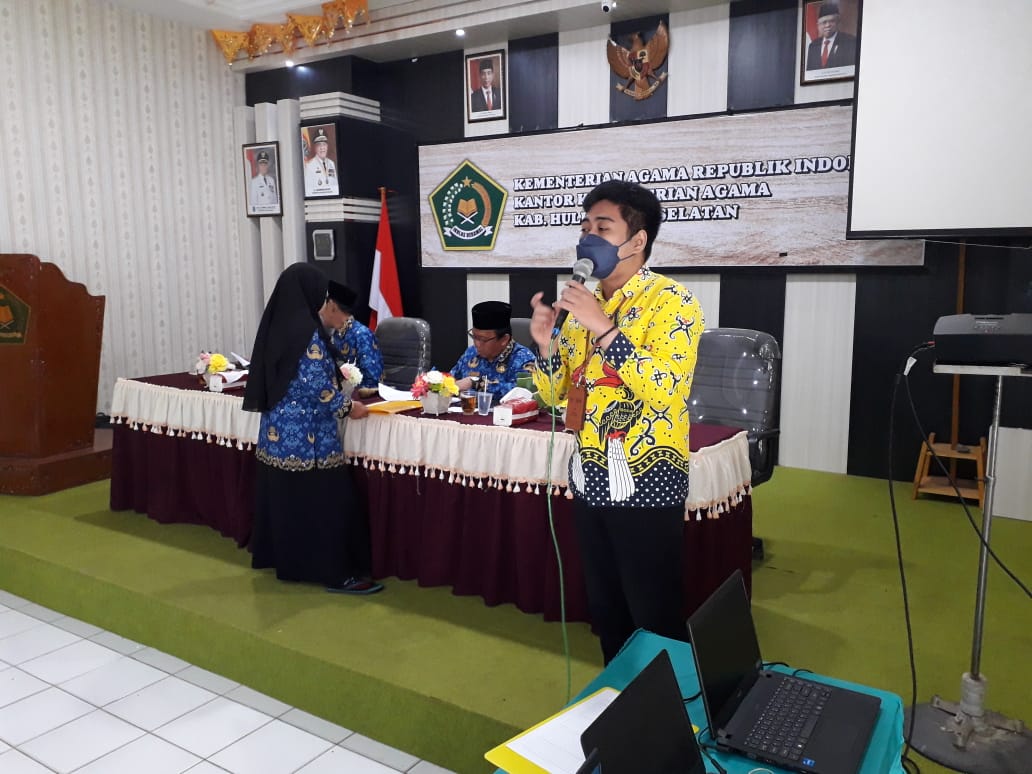 Kantor Pelayanan, Penyuluhan, dan Konsultasi Perpajakan (KP2KP) Kandangan melakukan jemput bola pemadanan Nomor Induk Kependudukan (NIK) menjadi Nomor Pokok Wajib Pajak (NPWP) di Kantor Kementerian Agama Kabupaten Hulu Sungai Selatan (Jumat, 17/3). Pada acara tersebut juga dilaksanakan edukasi pelaporan Surat Pemberitahuan (SPT) Tahunan Orang Pribadi mengingat tanggal jatuh tempo pelaporan yang akan berakhir pada 31 Maret 2023. Para peserta tampak memenuhi ruangan aula Kementerian Agama Kabupaten Hulu Sungai Selatan dan menyimak pemaparan materi dengan saksama.