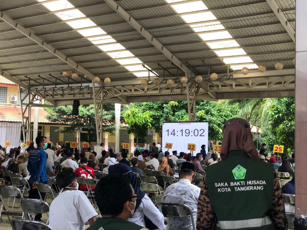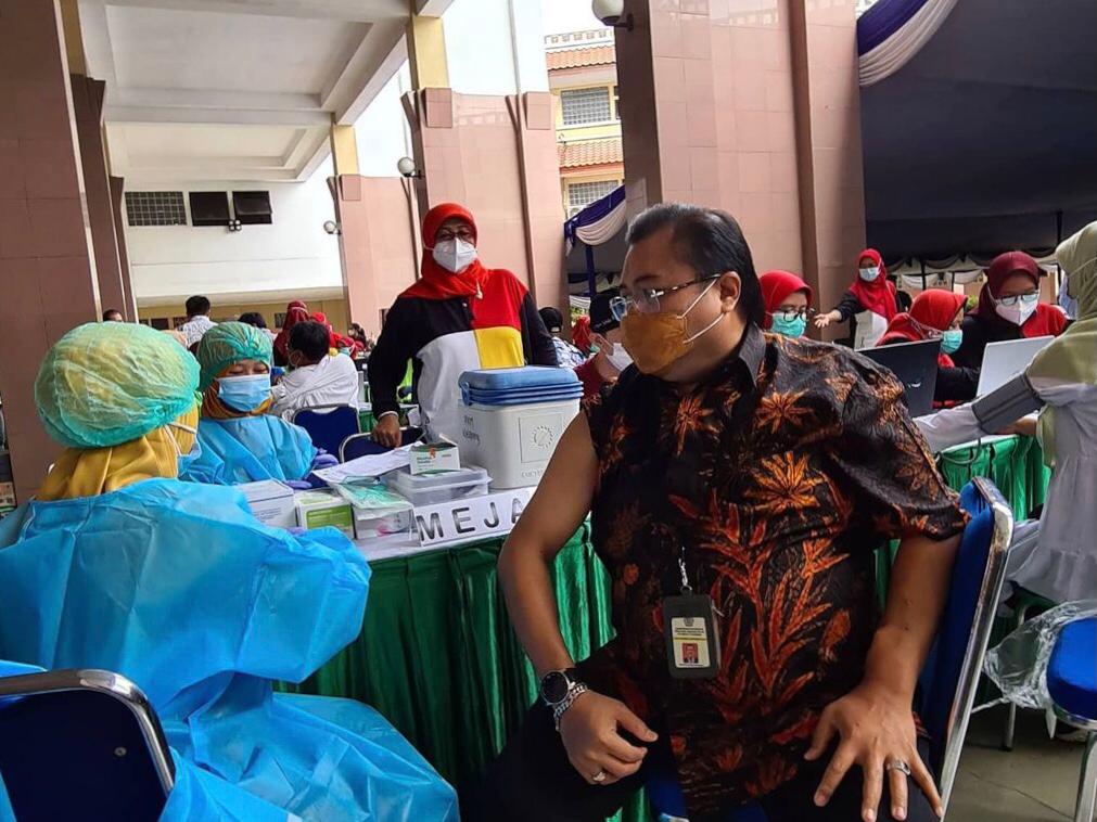 Pegawai KPP Madya Tangerang mendapatkan vaksinasi dosis kedua dari Dinas Kesehatan Kota Tangerang yang diselenggarakan di halaman Patio Pusat Pemerintahan Kota Tangerang (Jumat, 12/3).
