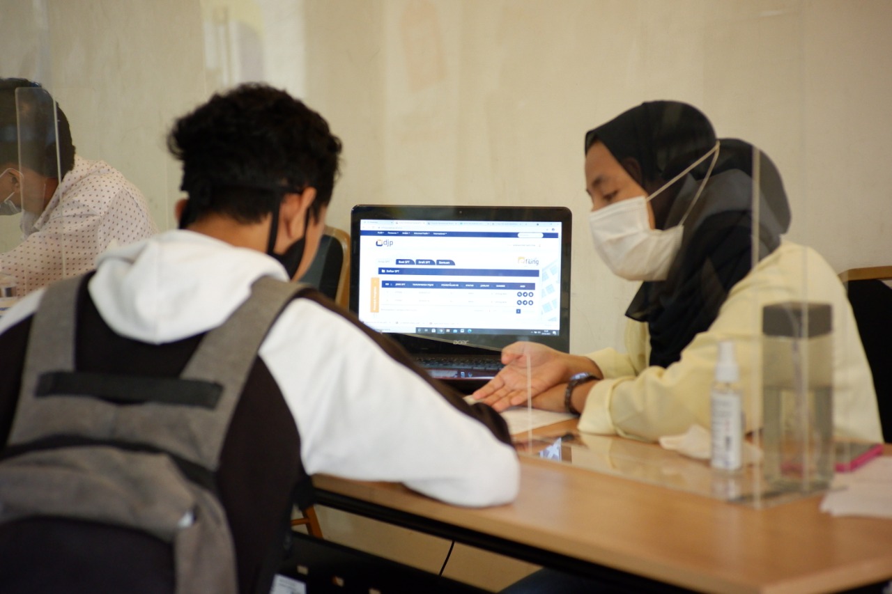 Sepuluh relawan pajak membantu asistensi pengisian SPT Tahunan kepada Wajib Pajak Orang Pribadi di Kantor Wilayah DJP Kalimantan Timur dan Utara, Balikpapan (Senin, 22/3). Relawan pajak ini berasal dari mahasiswa Perguruan Tinggi di Kota Balikpapan seperti Institut Teknologi Kalimantan, Politeknik Negeri Balikpapan, Akademi Kebidanan Borneo Medistra, dan Universitas Mulia.