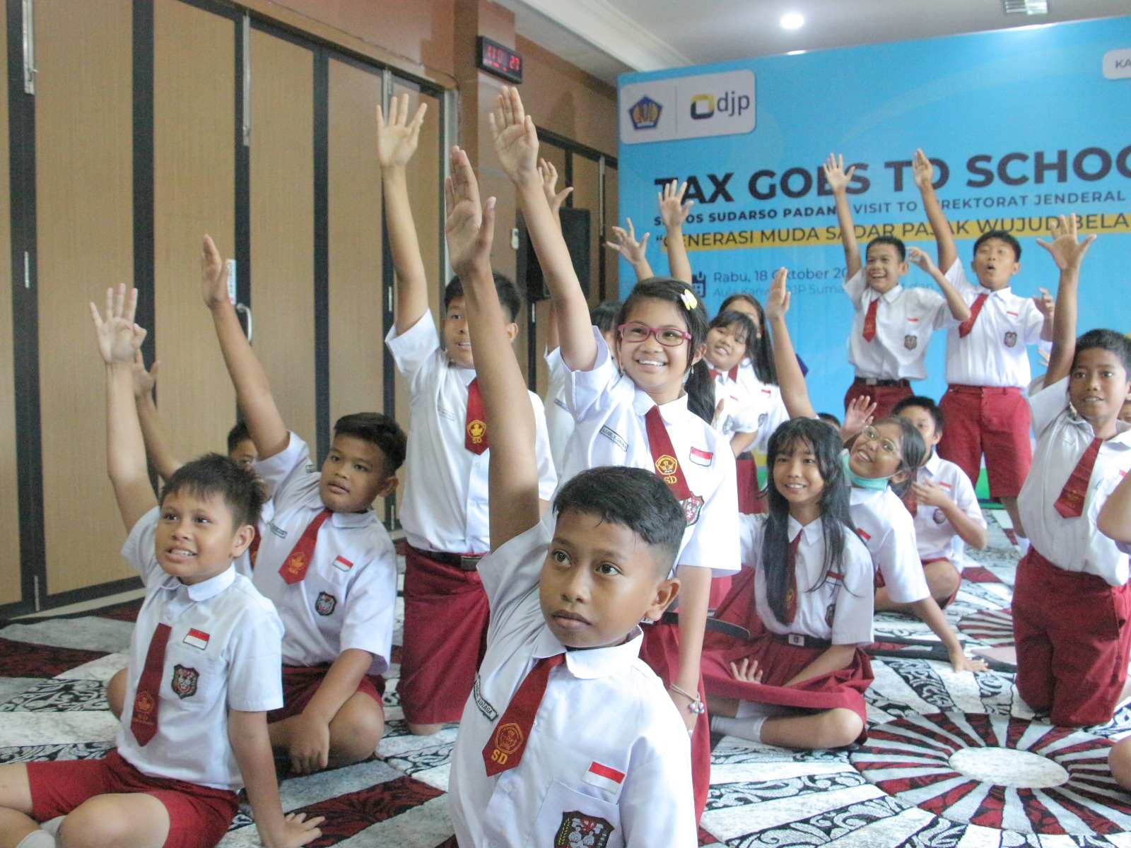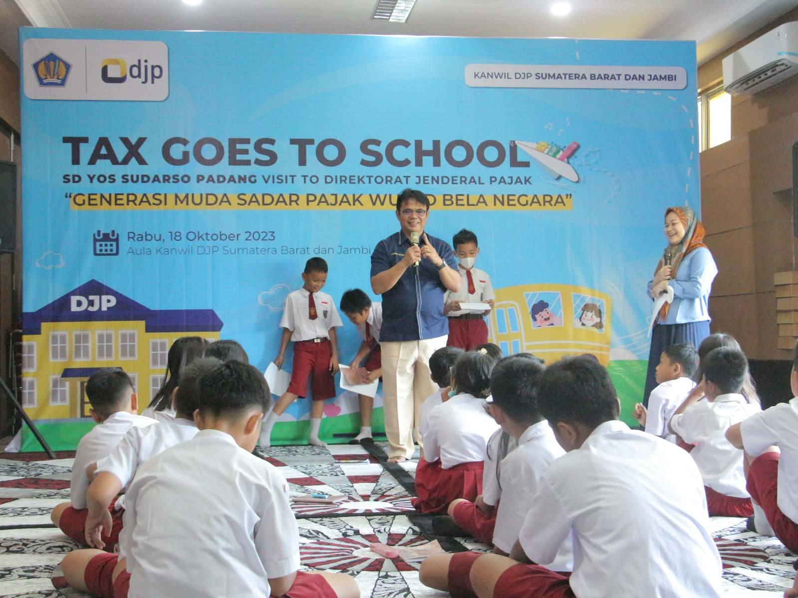 Kantor Wilayah Direktorat Jenderal Pajak Sumatera Barat dan Jambi (Kanwil DJP Sumbarja) mengadakan kegiatan Tax Goes to School (TGTS) dalam bentuk kegiatan kunjungan SD Yos Sudarso ke Aula Kanwil DJP Sumbarja, Kota Padang (Rabu, 18/10).