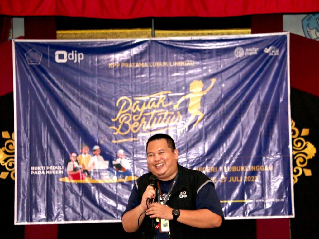 Kepala Subbagian Umum dan Kepatuhan Internal KPP Pratama Lubuk Linggau yang juga merupakan Penyuluh Anti Korupsi Nugroho Dian Respati pada kegiatan Pajak Bertutur 2023 ini menyampaikan materi mengenai nilai-nilai anti korupsi yang bertujuan untuk membangun dan meningkatkan kepedulian peserta terhadap bahaya dan akibat dari tindakan korupsi.